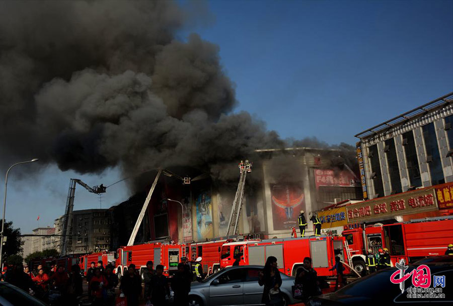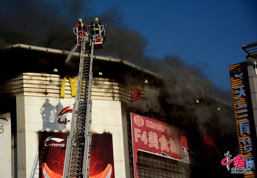 Shopping mall catches fire in downtown Beijing (1/4)