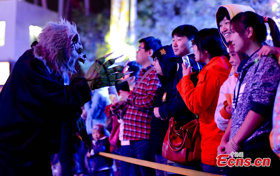 Photo taken on October 14, 2013 shows a Halloween carnival at Beijing Happy Valley. The carnival will run till November 3 to celebrate the upcoming Halloween day. [Photo: China News Service / Lu Xin]