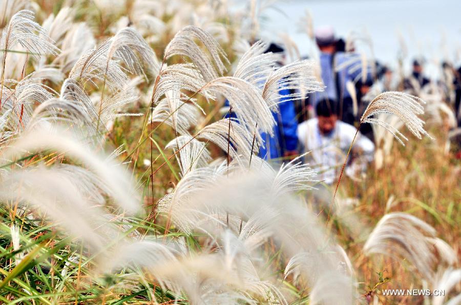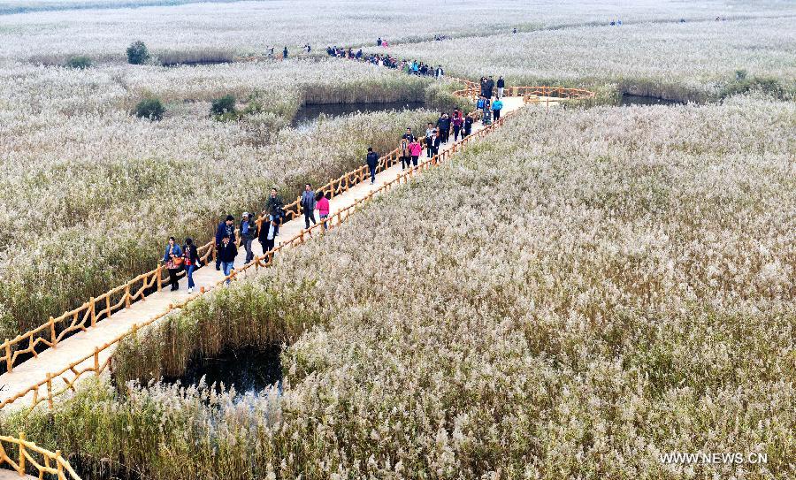 Reeds are seen at the Yellow River wetland in Dongying, east China's Shandong Province, Oct. 19, 2013. (Xinhua/Dong Naide)