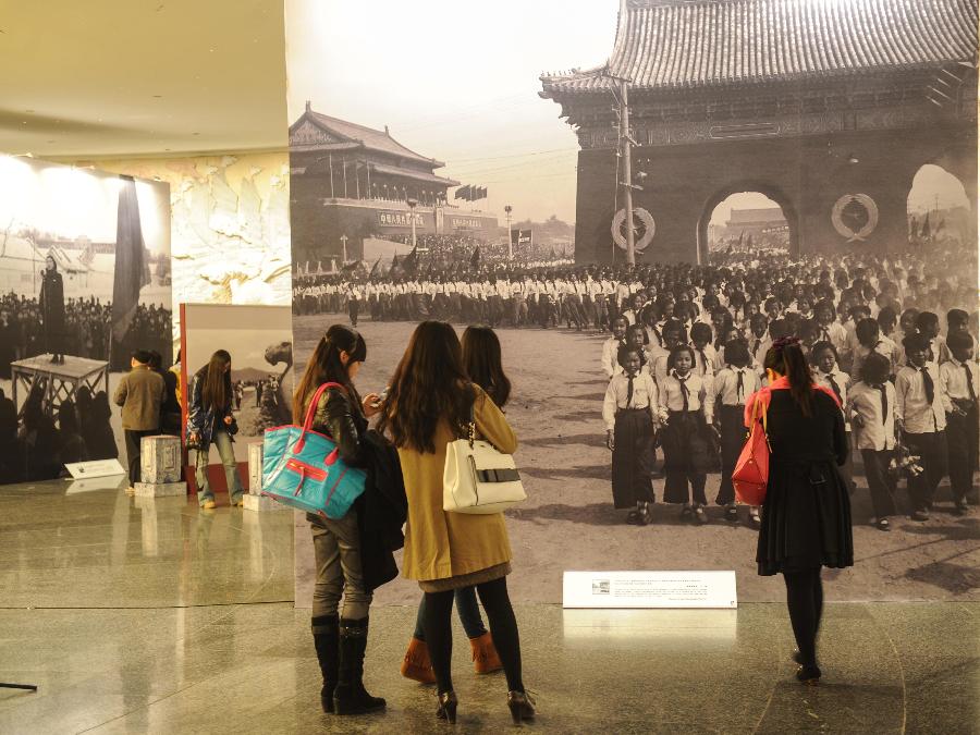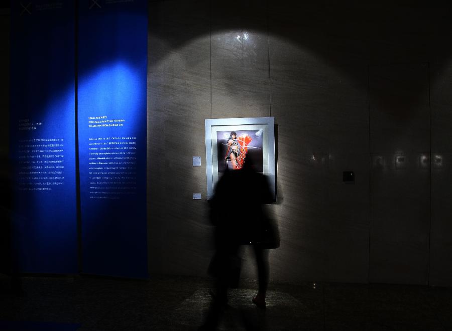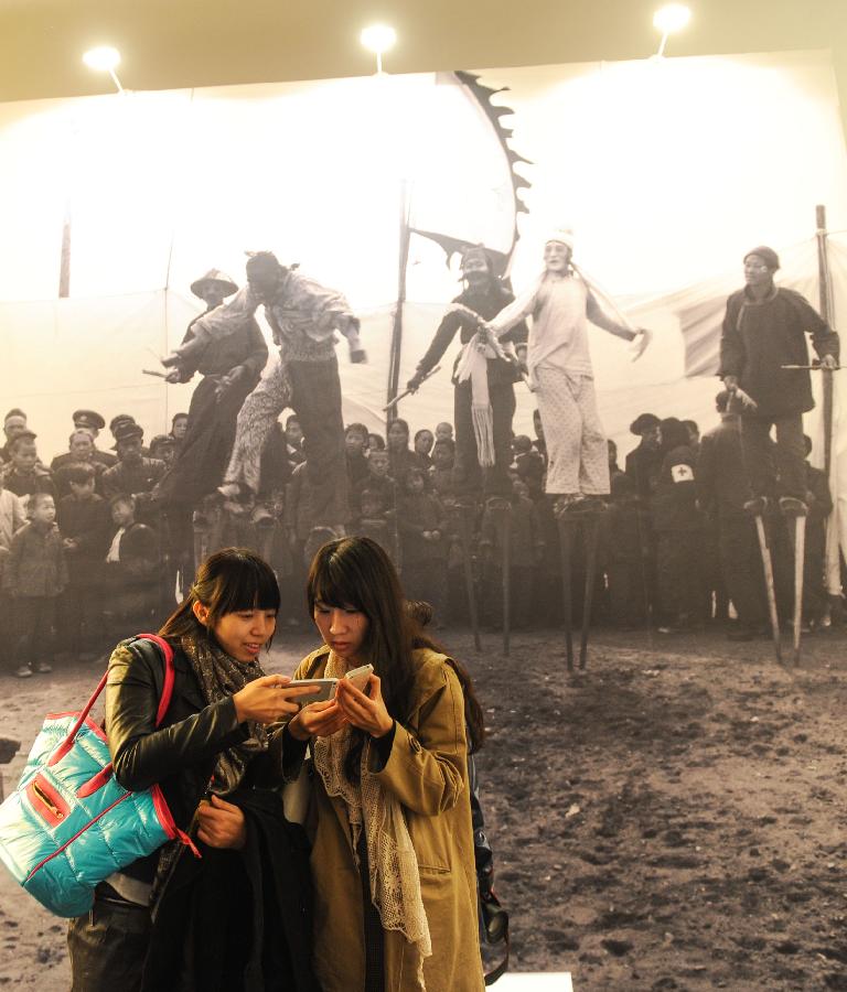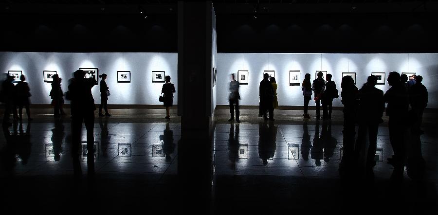 Visitors view photos at a special exhibition of the Photo Beijing 2013 at the China Millennium Monument in Beijing, capital of China, Oct. 24, 2013. The Photo Beijing 2013 kicked off on Thursday, offering photographers, curators and artists a platform of communication and cooperation. (Xinhua/Luo Xiaoguang)