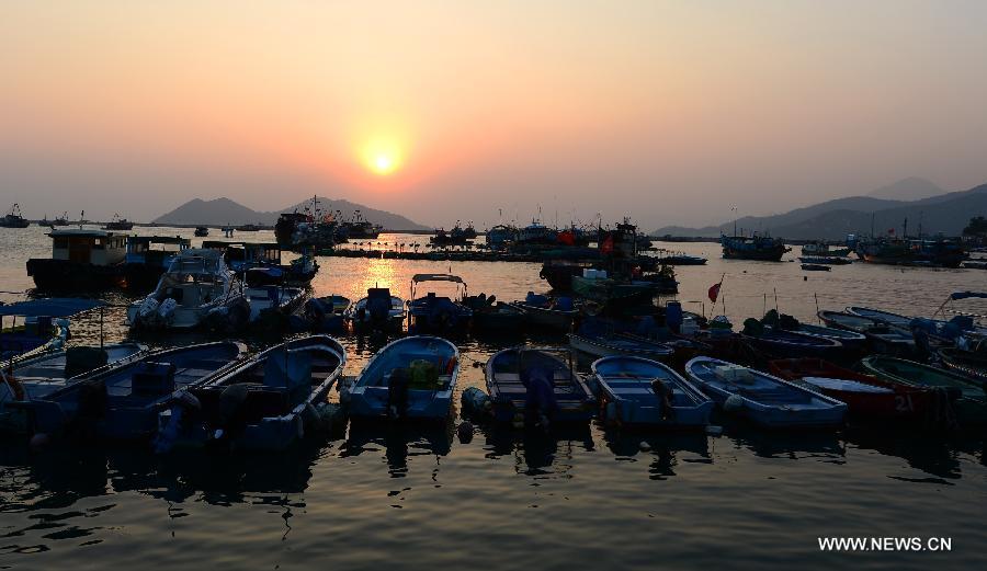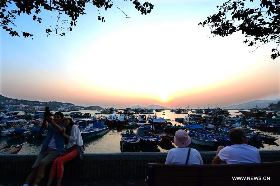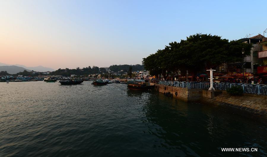 Photo taken on Oct. 25, 2013 shows the sunset scenery at Cheung Chau Island, an outlying island which is a good place to enjoy leisure time, in south China's Hong Kong. (Xinhua/Qin Qing)