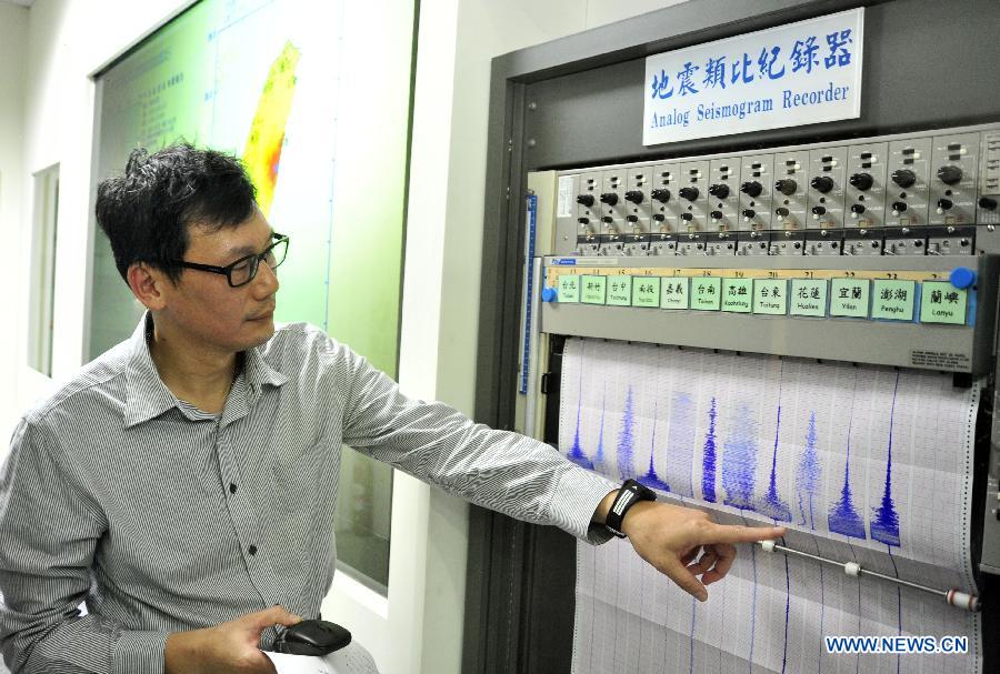 An earthquake surveyor checks the earthquake data in Taipei, southeast China's Taiwan, Oct. 31, 2013. A 6.7-magnitude earthquake jolted Taiwan's Hualien at 8:02 p.m. Thursday (Beijing Time), according to the China Earthquake Networks Center. (Xinhua/Wu Ching-teng)