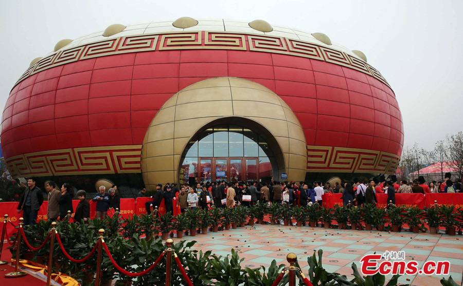 Photo taken on November 3, 2013 shows an 18-meter-high drum-shaped building in Hefei, capital city of east China's Anhui province. [Photo: China News Service / Han Suyuan]