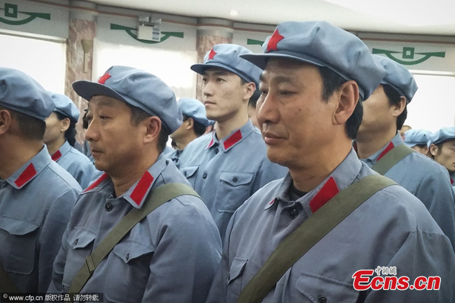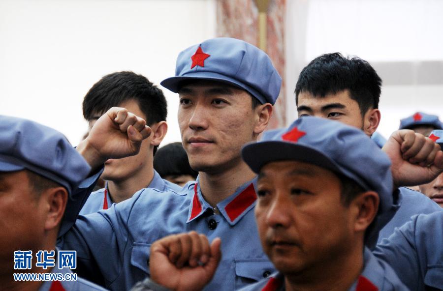 Chinese hurdler Liu Xiang (C), dressed in Red Army uniforms, takes oath for the Rio 2016 Olympic Games at Jinggangshan revolutionary base in Ji'an of east China's Jiangxi province on November 3, 2013. [Photo/Xinhua]