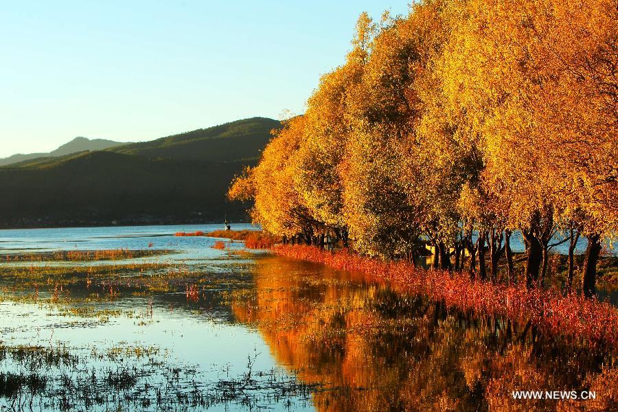 Photo taken on Nov. 9, 2013 shows the scenery of the Lashi Lake, 10 kilometers west of Lijiang, southwest China's Yunnan Province. (Xinhua/Xing Guangli)