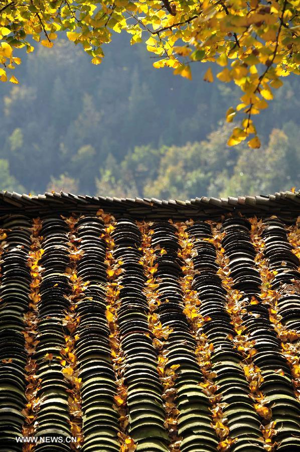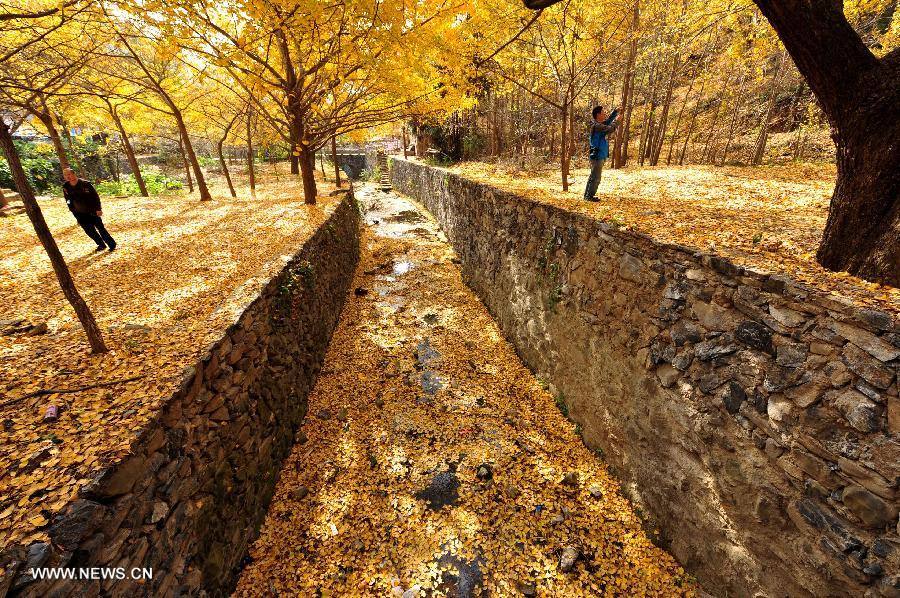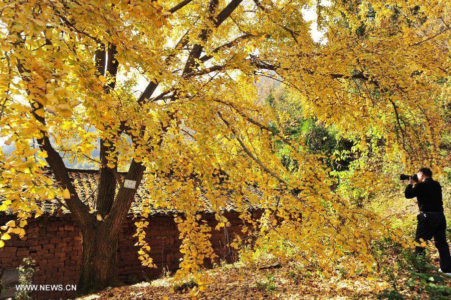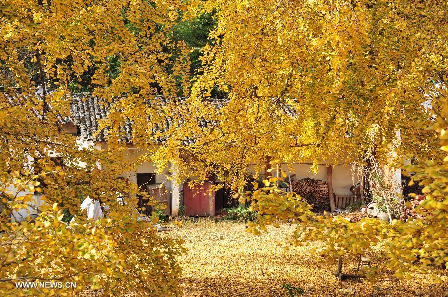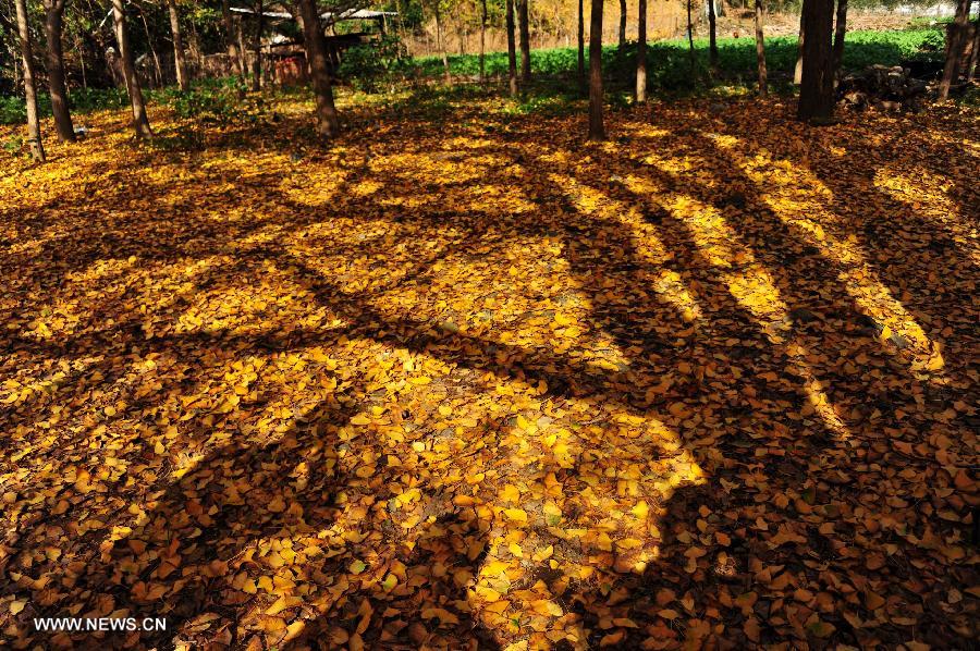 Photo taken on Nov. 14, 2013 shows gingkgo leaves at the Anlu Gingkgo State Forest Park in Anlu City, central China's Hubei province. (Xinhua/Du Huaju)