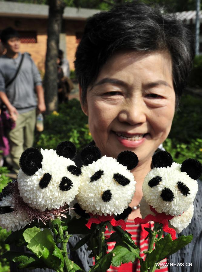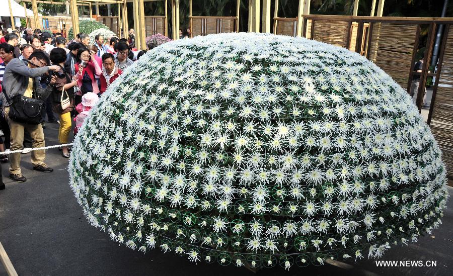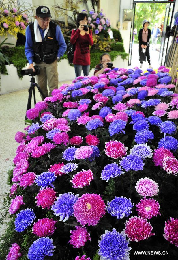 People take photos of the flowers during a chrysanthemum flower expo in Taipei, southeast China's Taiwan, Nov. 17, 2013. The expo opened here on Sunday, and will last until Dec. 1. (Xinhua/Wu Ching-teng)