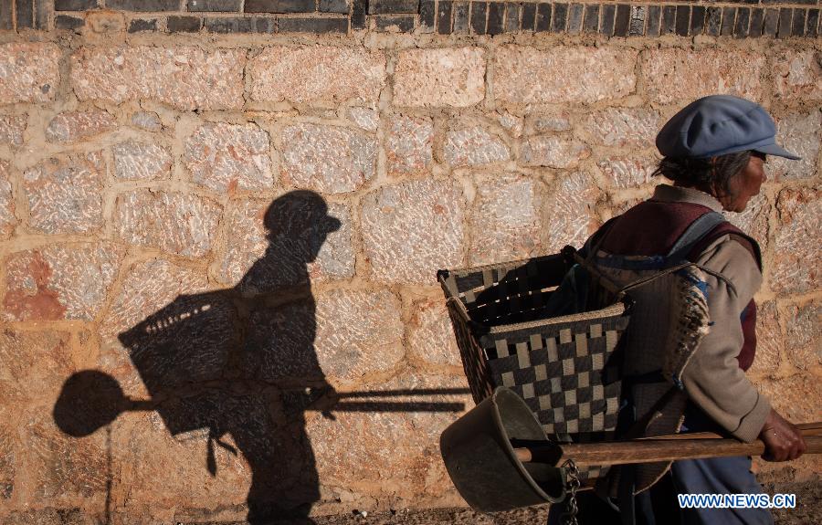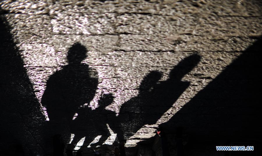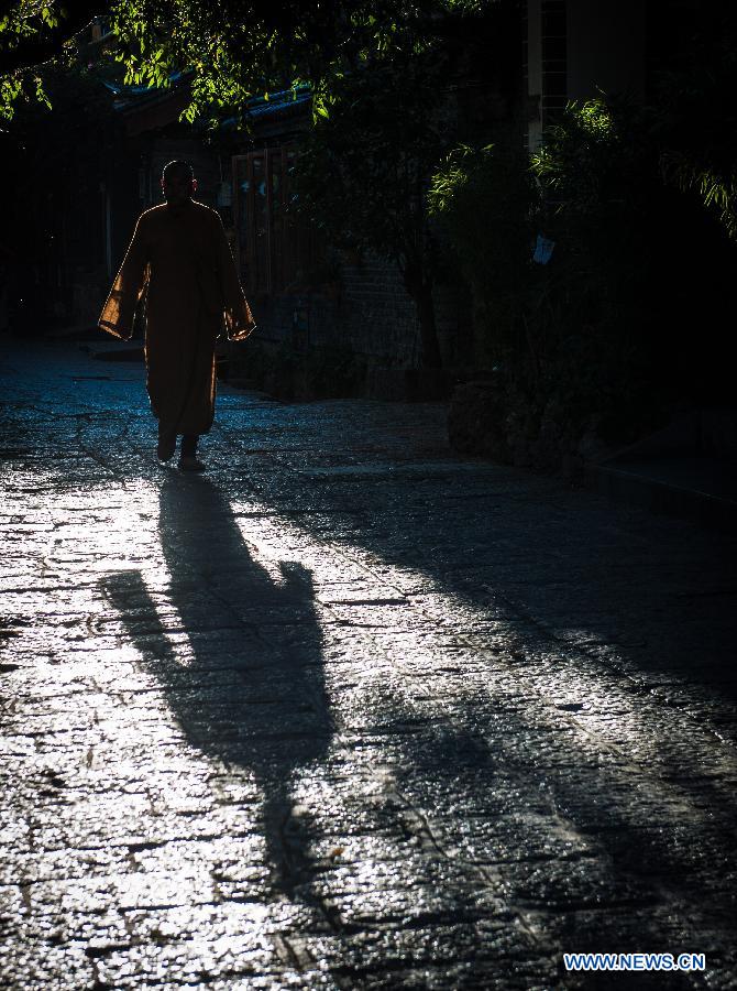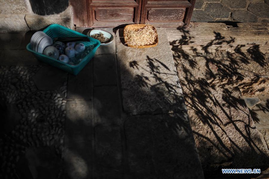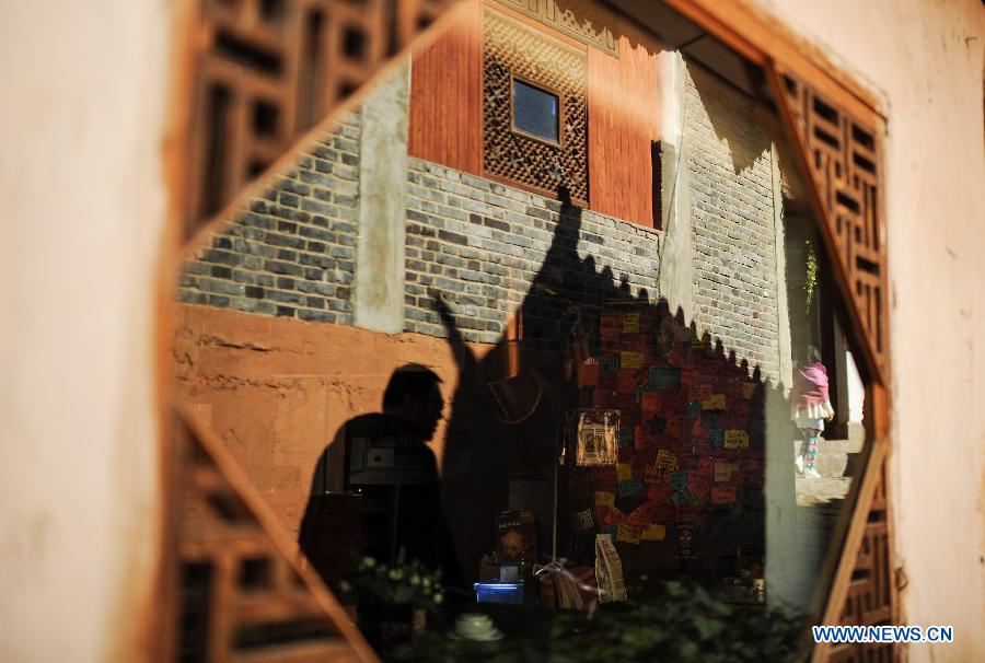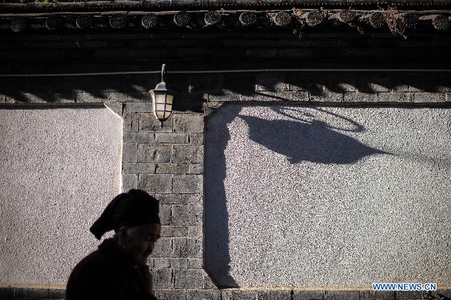 The shadows of tree branches are seen in a courtyard in the old town of Lijiang, southwest China's Yunnan Province, Nov. 7, 2013. (Xinhua/Shen Hong)