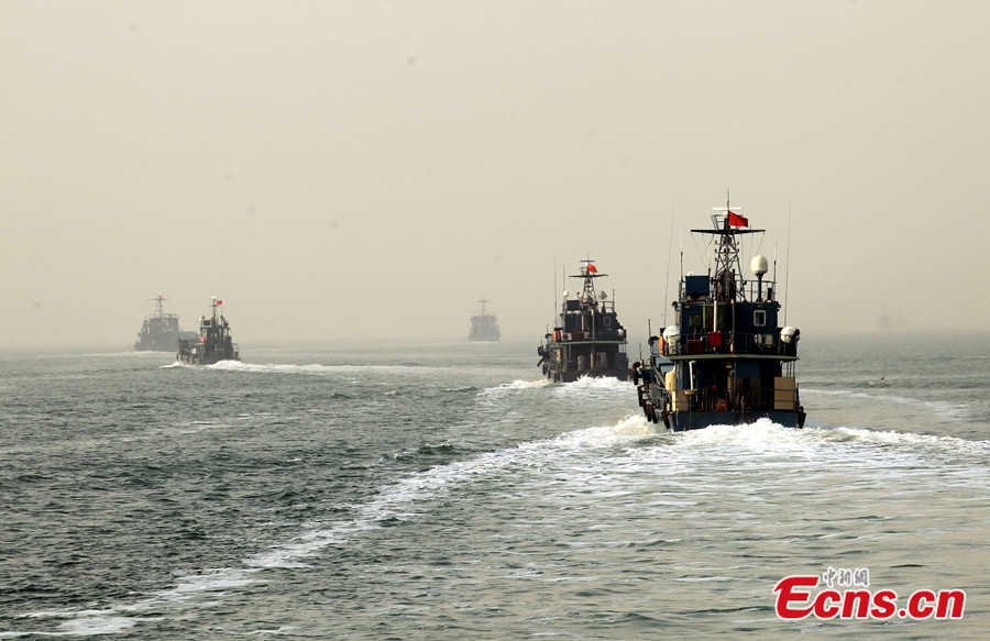 Chinese People's Liberation Army (PLA) conducts its first live-firing joint exercise, named "Joint Operation-2013D", in the Bohai Sea on November 17, 2013. More than 5,000 officers and soldiers took part in Sunday's exercise. [Photo: China News Service / Qiu Chengliang]