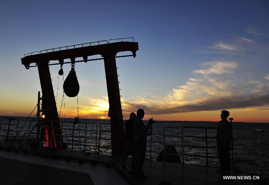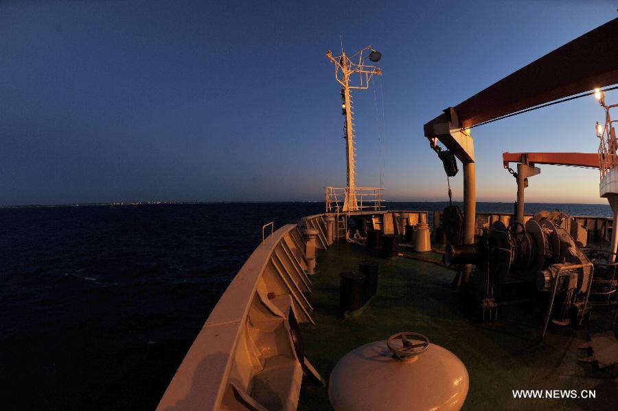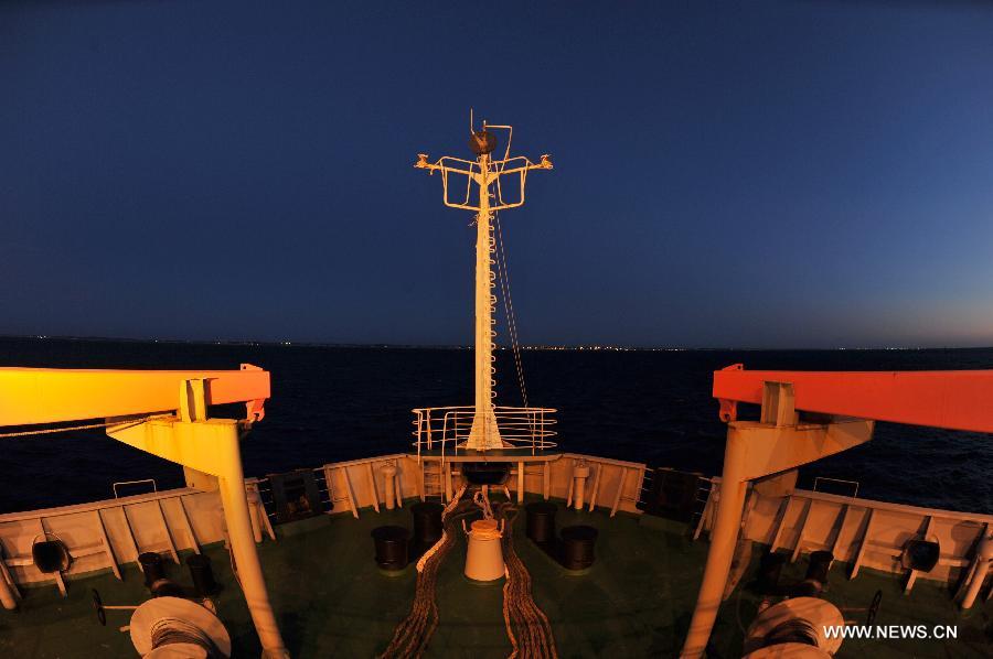 The Chinese research vessel and icebreaker Xuelong (Snow Dragon) arrives in the anchorage of Fremantle, Australia, Nov. 19, 2013. Xuelong left east China's Shanghai on Nov. 7, setting sail on the country's 30th scientific expedition to Antarctica. (Xinhua/Zhang Jiansong)