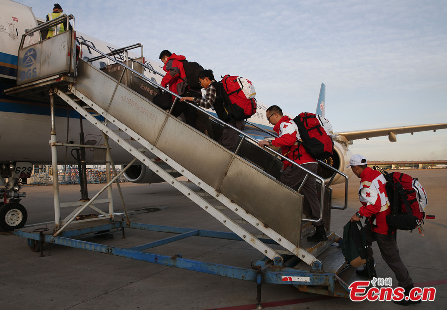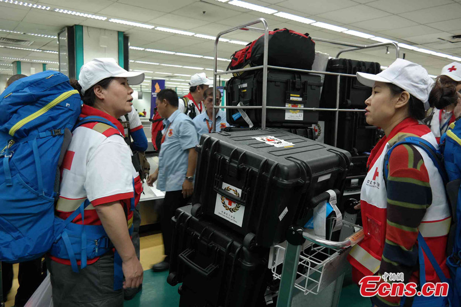 An 18-member Chinese rescue team arrives at Manila, capital city of Philippines, to provide humanitarian aid to the disaster-stricken areas hit by Super Typhoon Haiyan on Nov 20, 2013. [Photo: China News Service / Liu Guanguan]