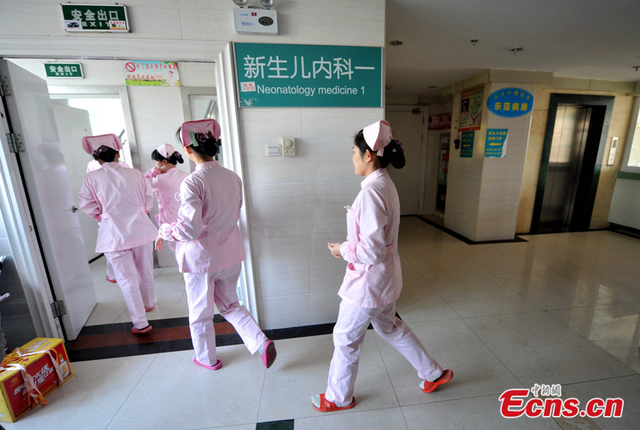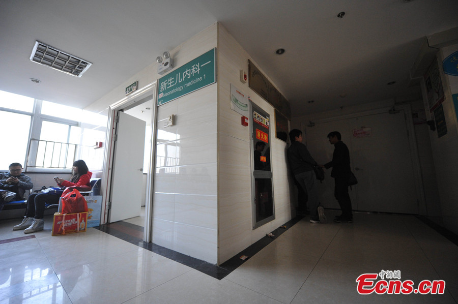 A baby boy, who was found alive before cremation, is receiving emergency treatment at Anhui Provincial Children's Hospital in Hefei, capital city of east China's Anhui province on November 20, 2013. The baby, only 7 days old, was saved from cremation when he started crying at a funeral parlor on Wednesday morning and he was sent back immediately to the hospital for emergency treatment. [Photo: China News Service / Zhang Ziya]