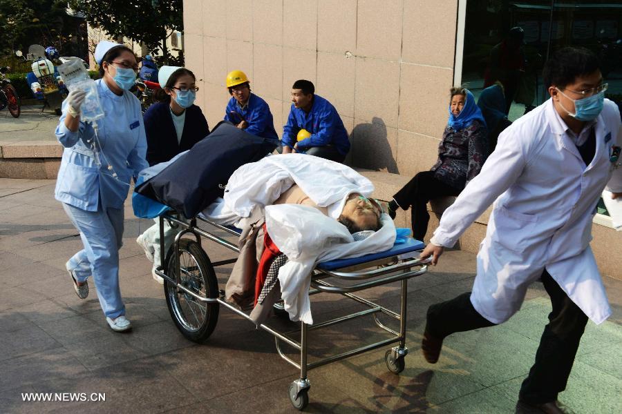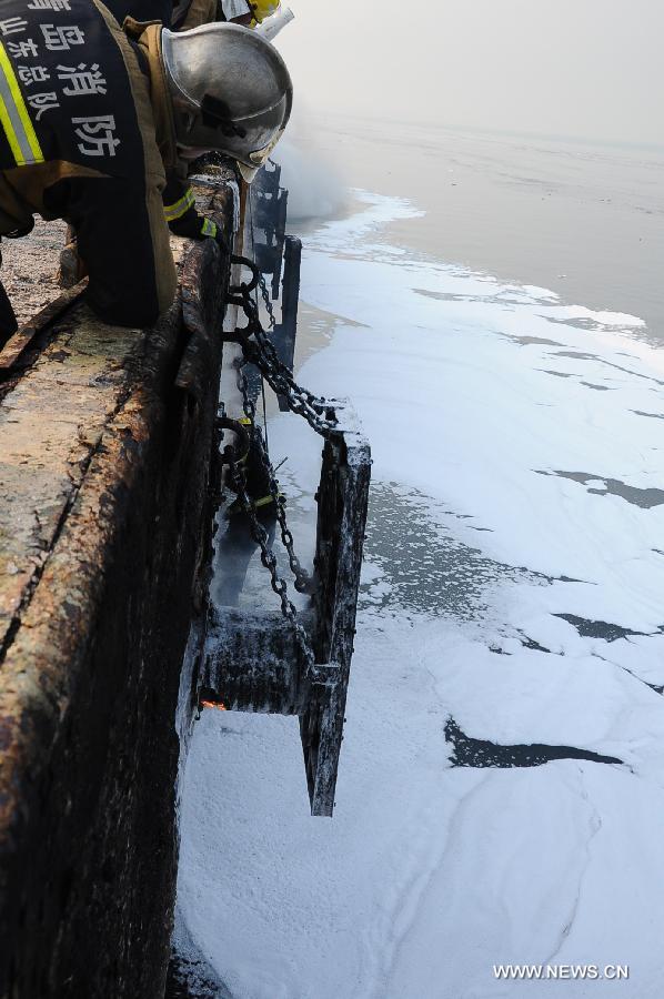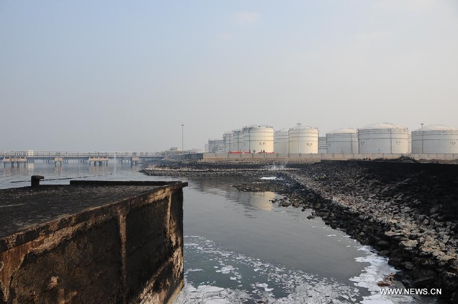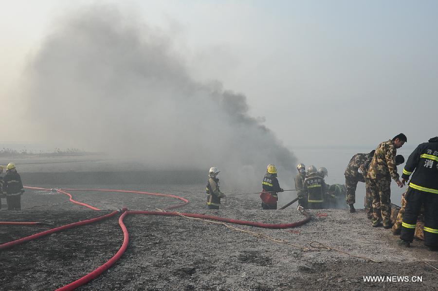 Photo taken with a mobile phone shows the site of a pipeline explosion in Qingdao, east China's Shandong Province, Nov. 22, 2013. A fire broke out and the blast occurred around 10 a.m. in the Huangdao District when workers were repairing a petroleum pipeline which broke and resulted in an oil leakage around 3 a.m. Casualties remained unknown. (Xinhua)