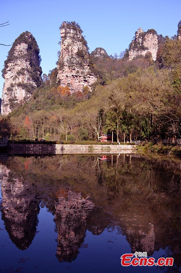 Photo taken on November 24, 2013 shows the scenery at Wulingyuan Scenic Area in Zhangjiajie city of central China's Hunan province. [Photo/Wu Yongbing]