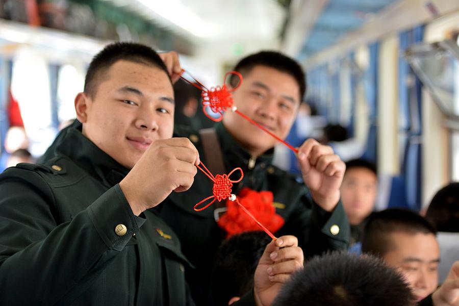A tearful farewell to comrades in Ningbo East Railway Station, Zhejiang province, on Nov 25, 2013. More than 1,000 veterans from Ningbo left the army camp. [Photo/Xinhua]