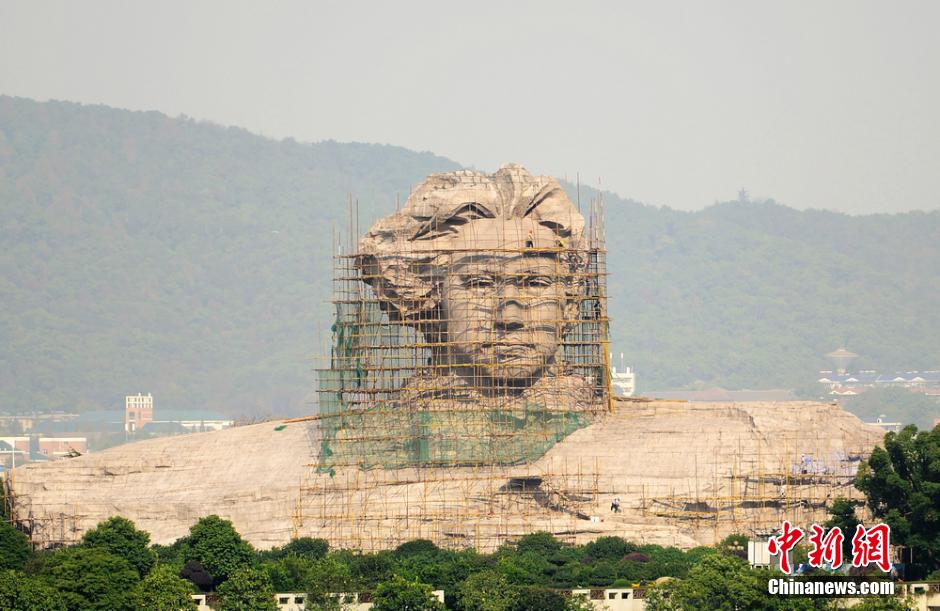 A statue of young Chairman Mao Zedong in Changsha city of Hunan province is covered in scaffolding on Nov 26, 2013. The statue is being cleaned in honor of the 120th anniversary of Mao’s birth (on Dec 26, 1893). [photo: Yang Huafeng]