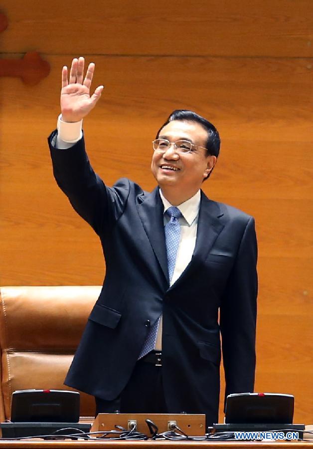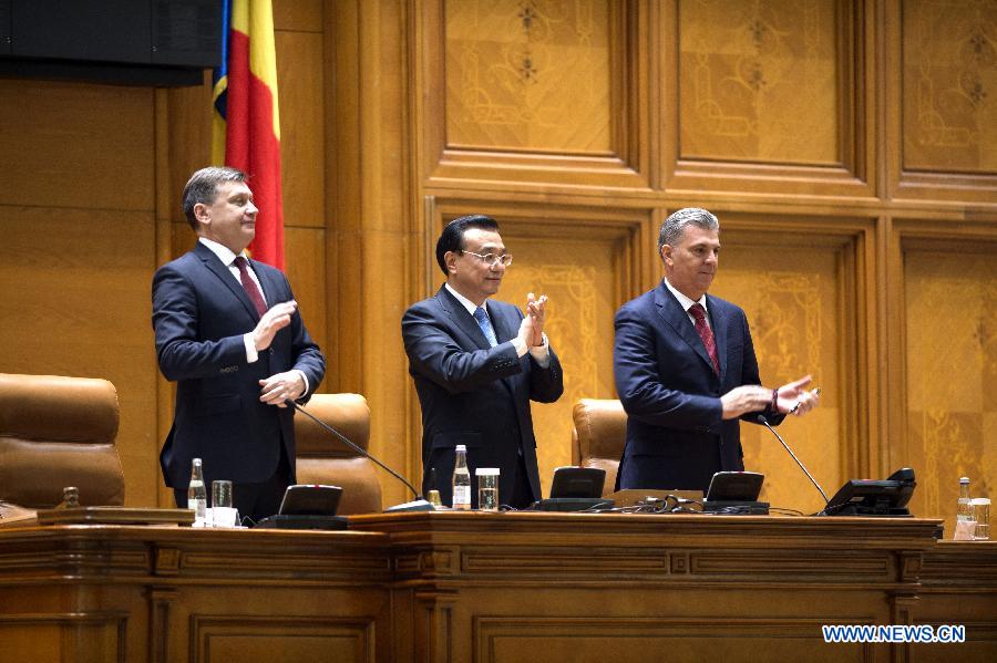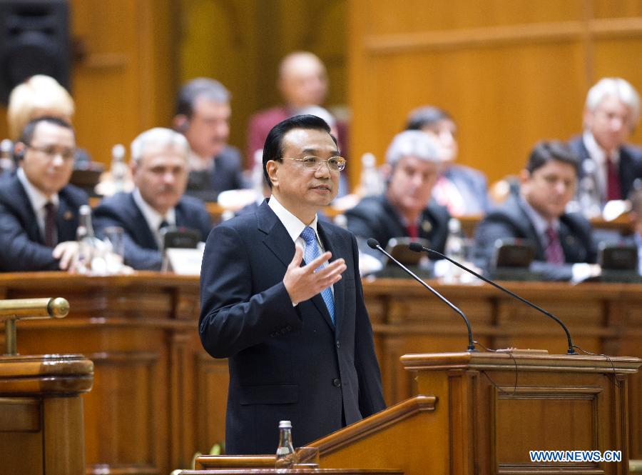 Chinese Premier Li Keqiang delivers a speech at the Palace of Parliament in Bucharest, Romania, Nov. 27, 2013. (Xinhua/Li Xueren)