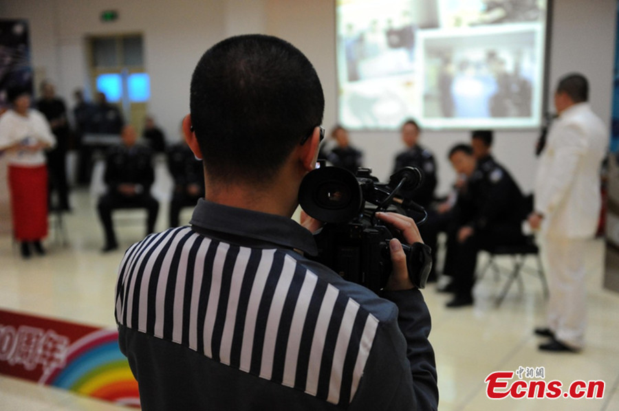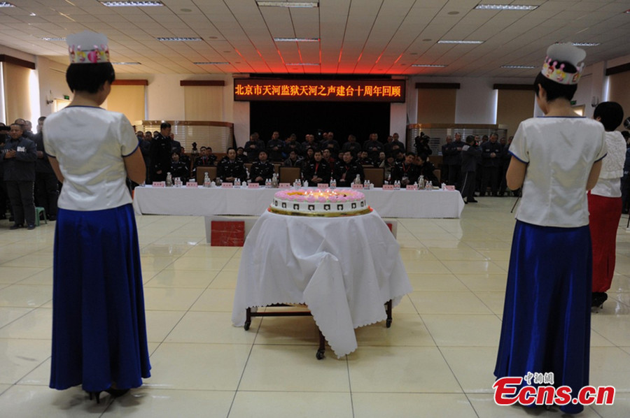 China's first TV Station in prison celebrates its 10th anniversary of founding in Beijing on November 27, 2013. The TV station, started on November 27, 2003, covered over 100,000 inmates both home and aboard. [Photo/IC]