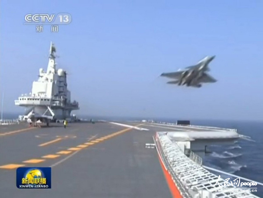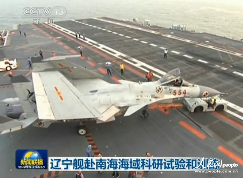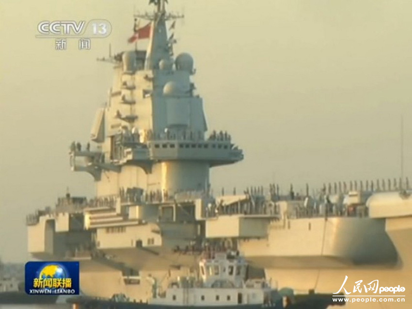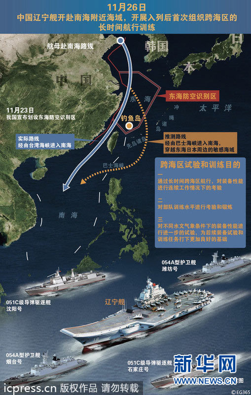 China's first aircraft carrier, the Liaoning, passed through the Taiwan Strait on Thursday morning on its way to a training mission in the South China Sea. (Photo source: pic.people.com.cn/Xinhua photo)