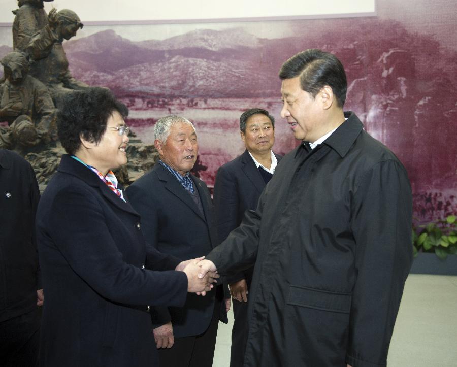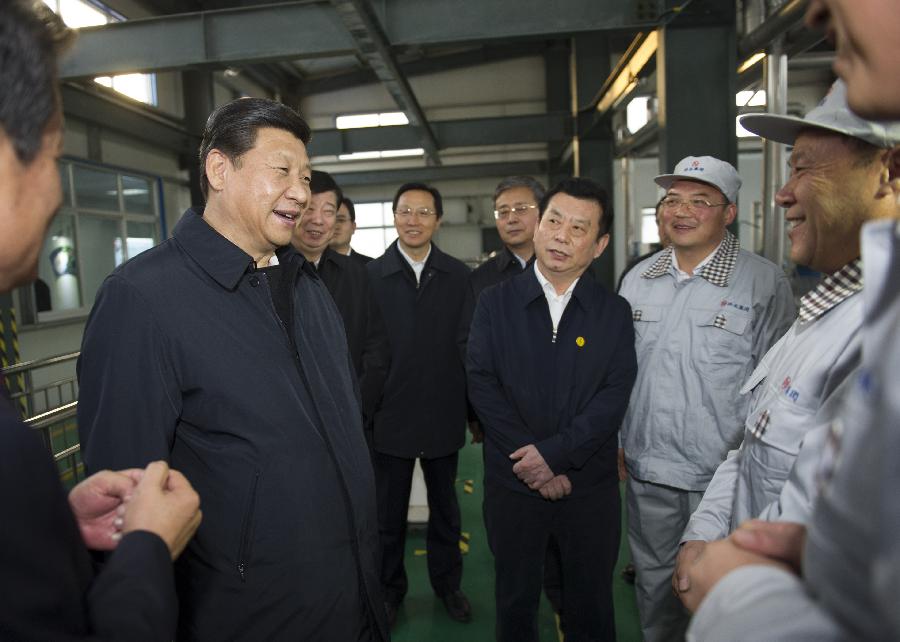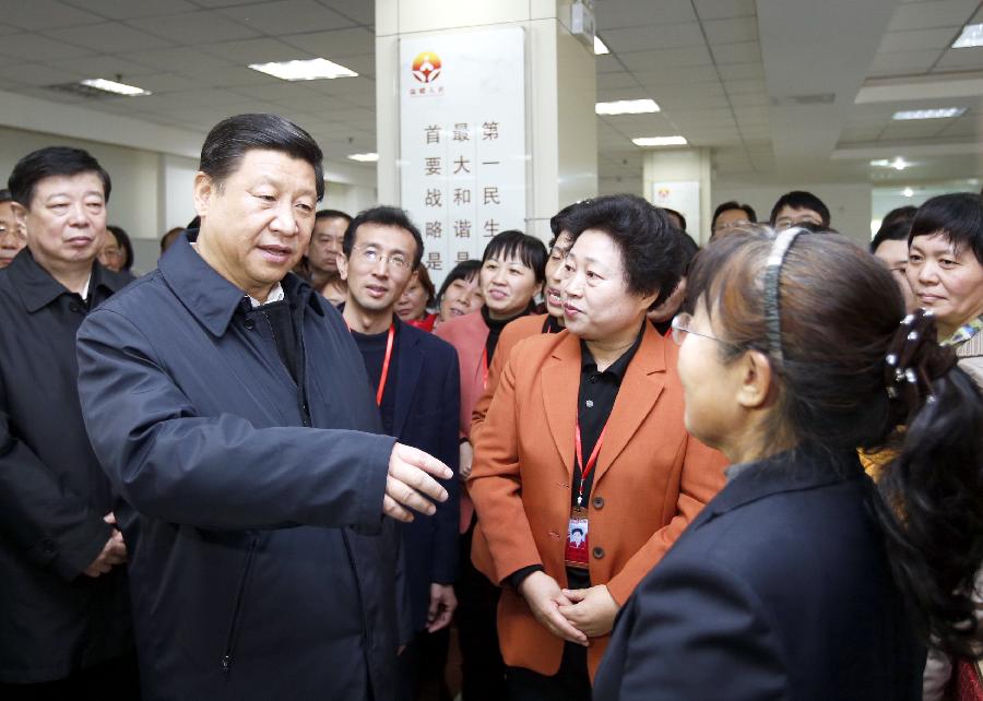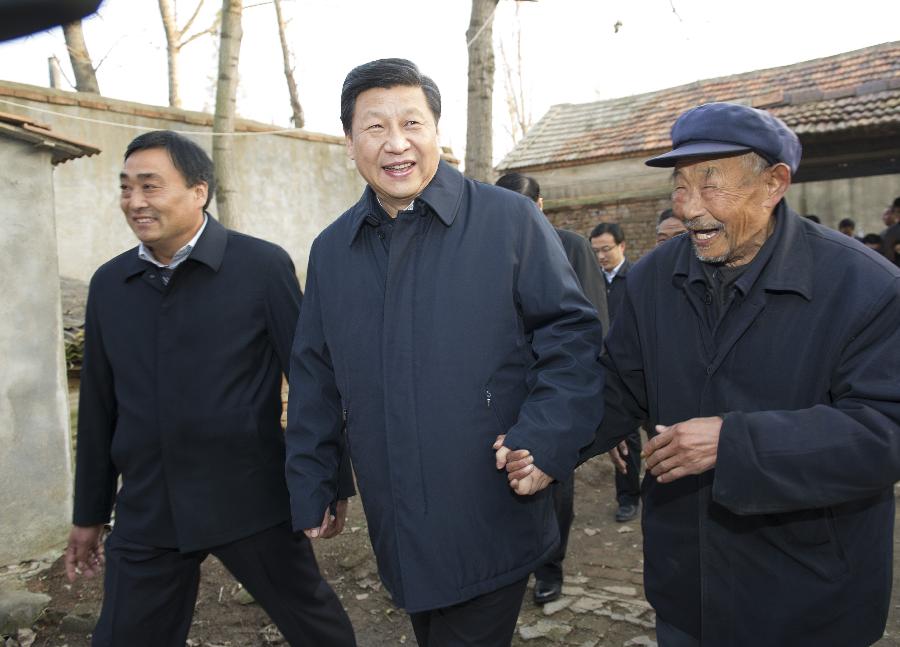 Chinese President Xi Jinping (C), also general secretary of the Communist Party of China (CPC) Central Committee and chairman of Central Military Commission, visits Shandong Academy of Agricultural Sciences in Jinan, capital of east China's Shandong Province, Nov. 27, 2013. Xi made an inspection tour of Shandong from Nov. 24 to 28. (Xinhua/Xie Huanchi)