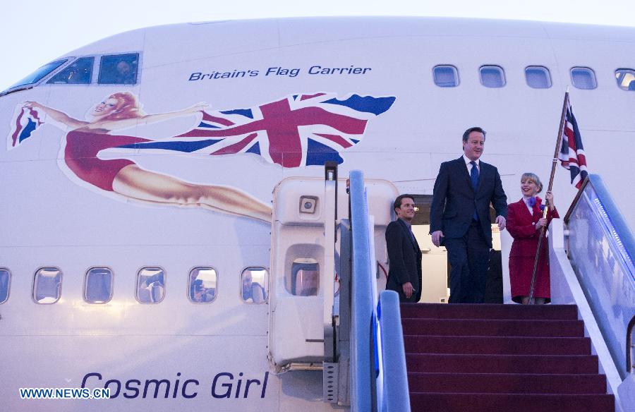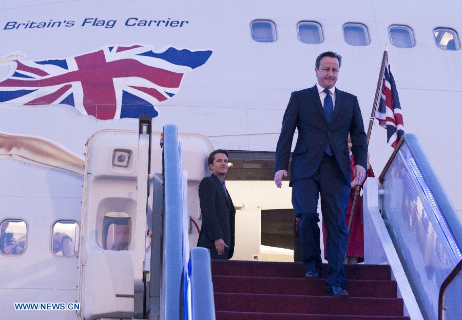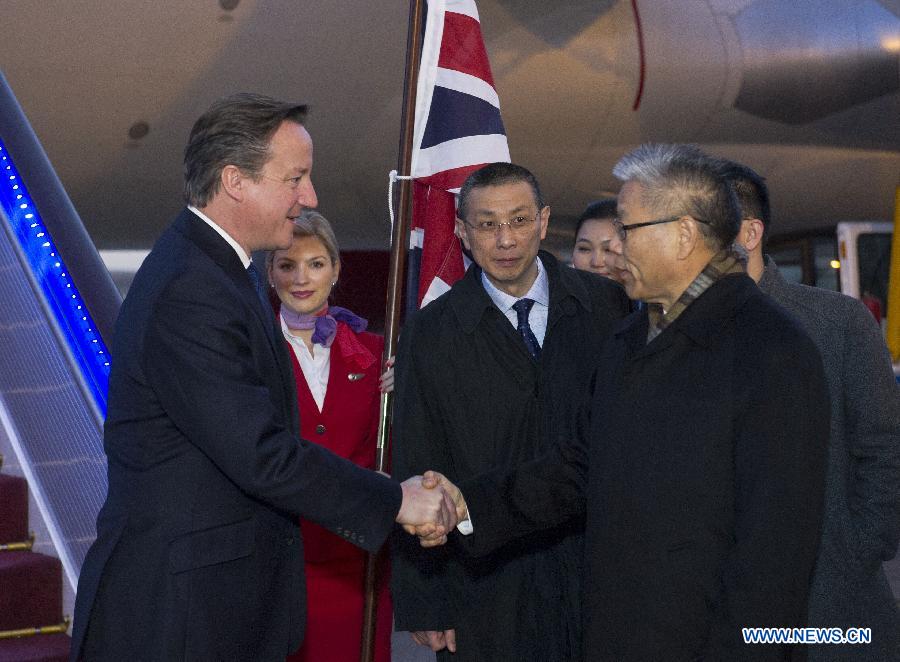 British Prime Minister David Cameron arrives in China for a three-day visit, in Beijing, capital of China, Dec. 2, 2013. (Xinhua/Wang Ye)