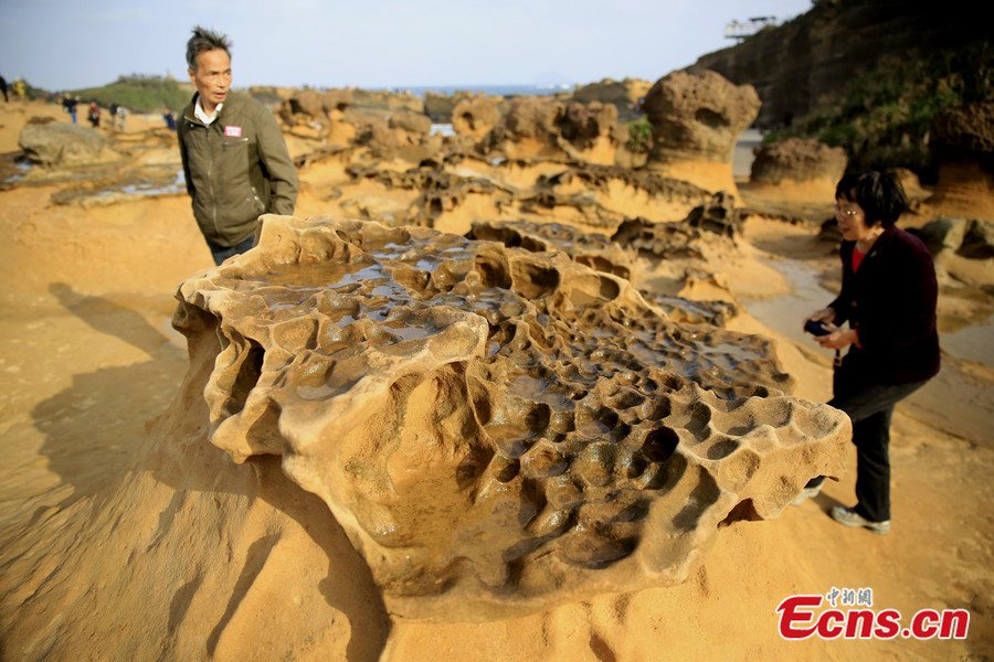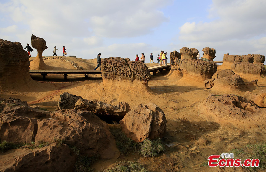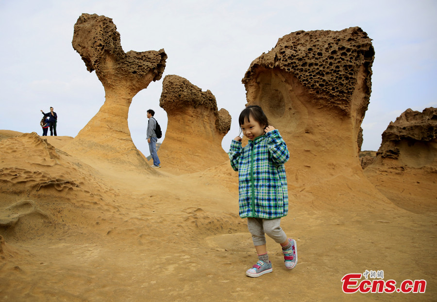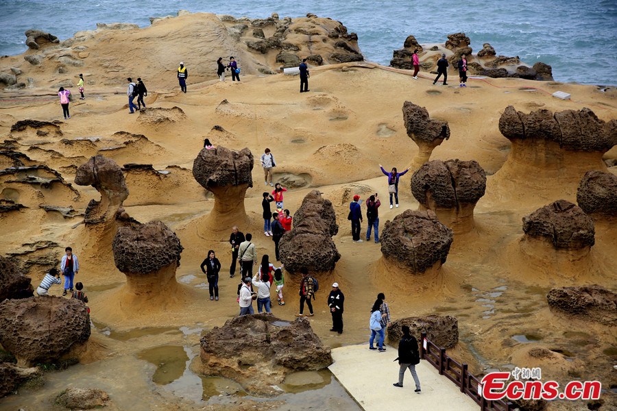 Yehliu Geopark, located in Taipei of Taiwan, is famous for its sea-erosion landscape. The total distance measured from the entrance of the Yehliu Geopark to the end of the cape is about 1.7 km. The rock landscape of Yehliu Geopark is one of most famous wonders in the world. The influences caused by wave attack, rock weathering, earth movement and crustal movement all contribute to the formation of such a rare and stunning geological landscape. [Photo: China News Service / Zhao Juan]