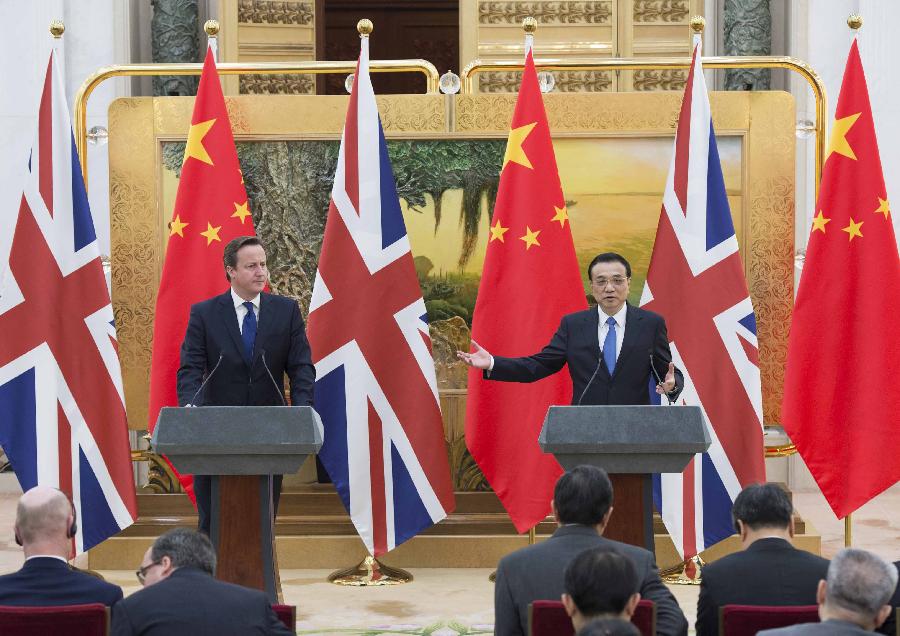 Chinese Premier Li Keqiang (R) and British Prime Minister David Cameron attend a press conference in Beijing, capital of China, Dec. 2, 2013. (Xinhua/Wang Ye)