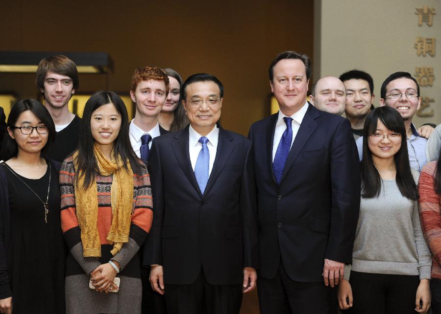 Chinese Premier Li Keqiang (L) and British Prime Minister David Cameron visit the National Museum of China, Beijing, capital of China, Dec. 2, 2013. (Xinhua/Liu Jiansheng)