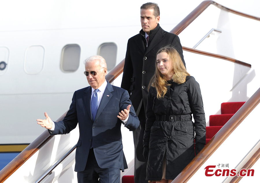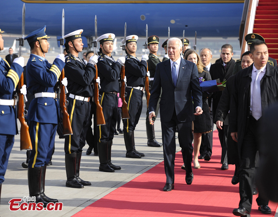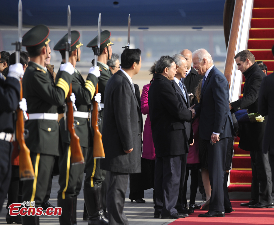 US Vice-President Joe Biden arrives in Beijing on Wednesday, Dec 4, 2013. Biden's tour of East Asia began in Japan and will end in the Republic of Korea. (Photo: China News Service / Hou Yu)