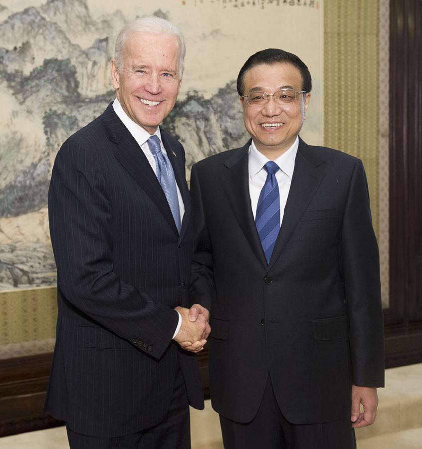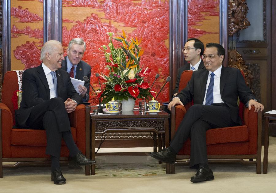 Chinese Premier Li Keqiang (R) meets with US Vice President Joe Biden in Beijing, capital of China, Dec. 5, 2013. (Xinhua/Huang Jingwen)