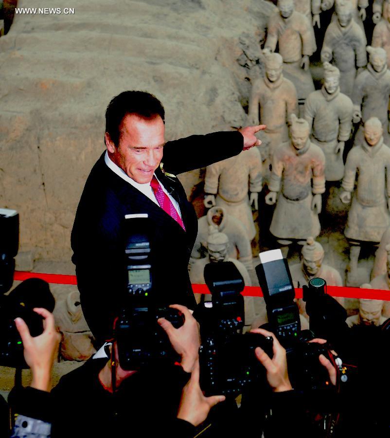 Movie Star, former California governor Schwarzenegger visits terracotta warriors (1/2)