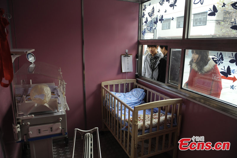 Photo taken on Dec 6, 2013 shows the inside of the first baby hatch in Xi’an of Shaanxi province, equipped with crib and incubator. The hatch received the first abandoned baby, a 20-days-old baby boy with congenital heart disease last Wednesday since it started operation a week ago. [Photo: CFP]