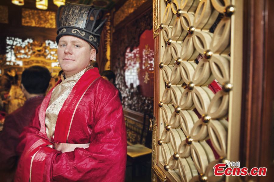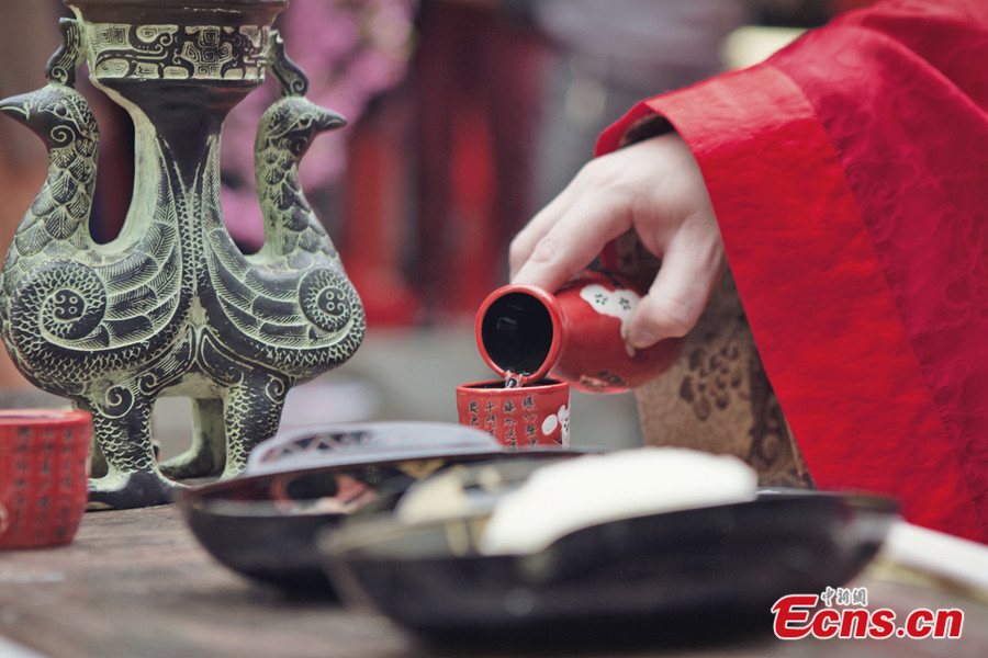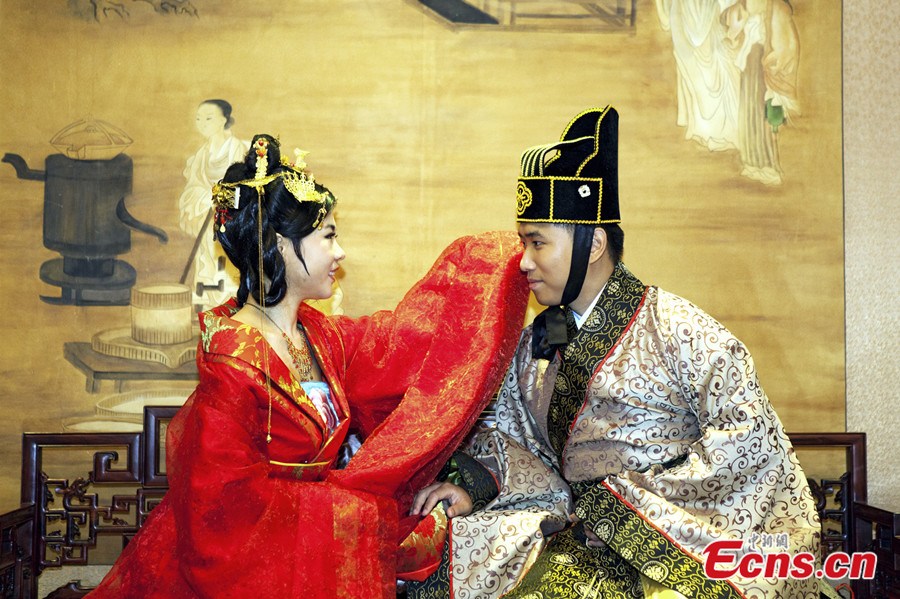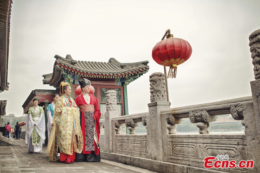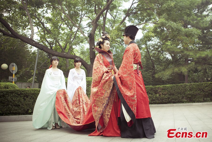 File photo taken on September 28, 2013 shows a han-style wedding in Beijing. [Photo: China News Service / Wang Chao]