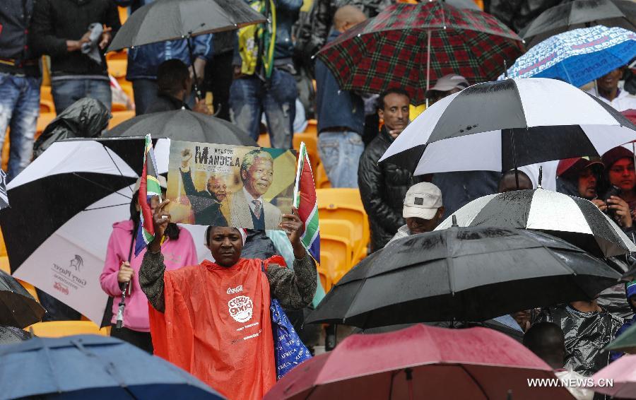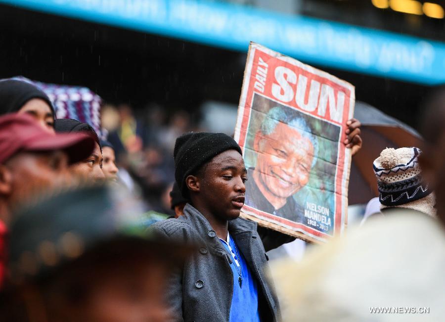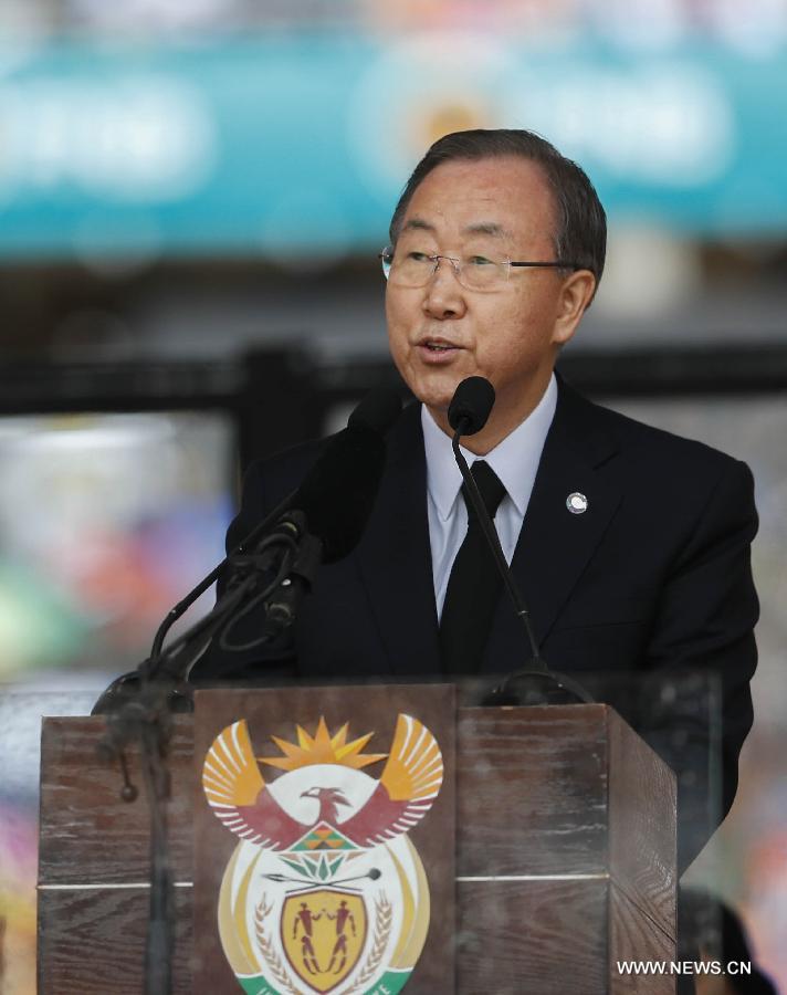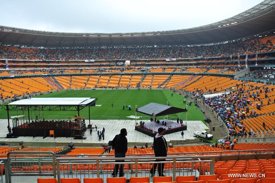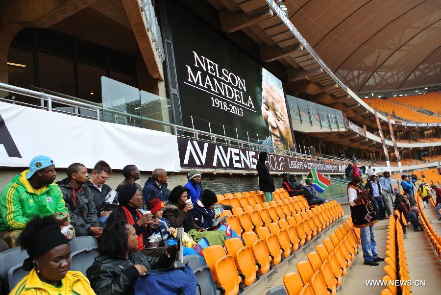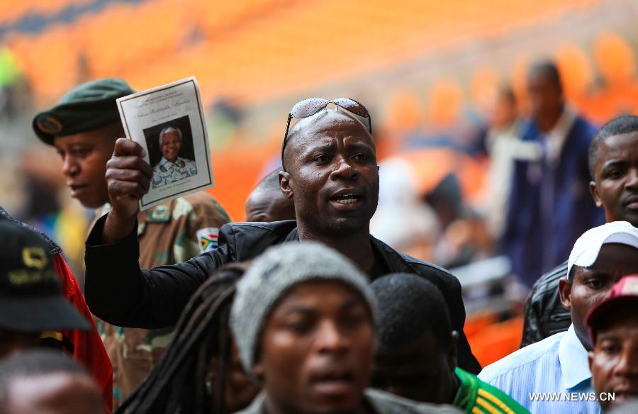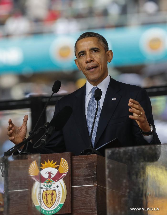 Chinese Vice President Li Yuanchao, the special representative of Chinese President Xi Jinping, delivers a speech during the memorial service for Nelson Mandela in Johannesburg, South Africa, on Dec 10, 2013. Li Yuanchao on Tuesday expressed deep condolences and paid high tribute to former South African President Nelson Mandela, saying Chinese will always cherish Mandela's contribution to China-South Africa relations. (Xinhua/Meng Chenguang)