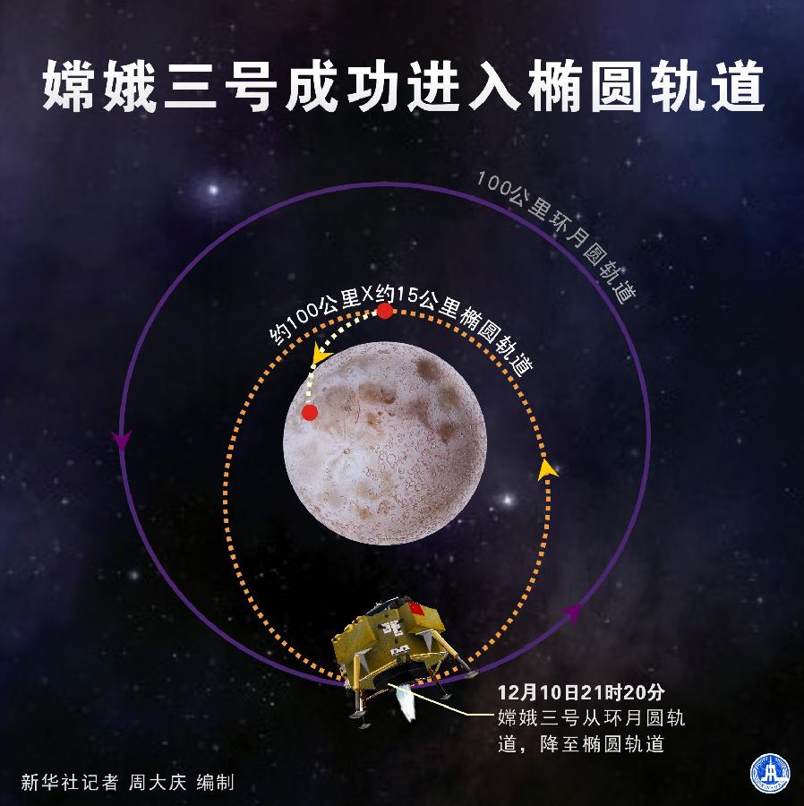 China's lunar probe Chang'e-3 entered an orbit closer to the moon on Dec. 10, 2013. (Xinhua)