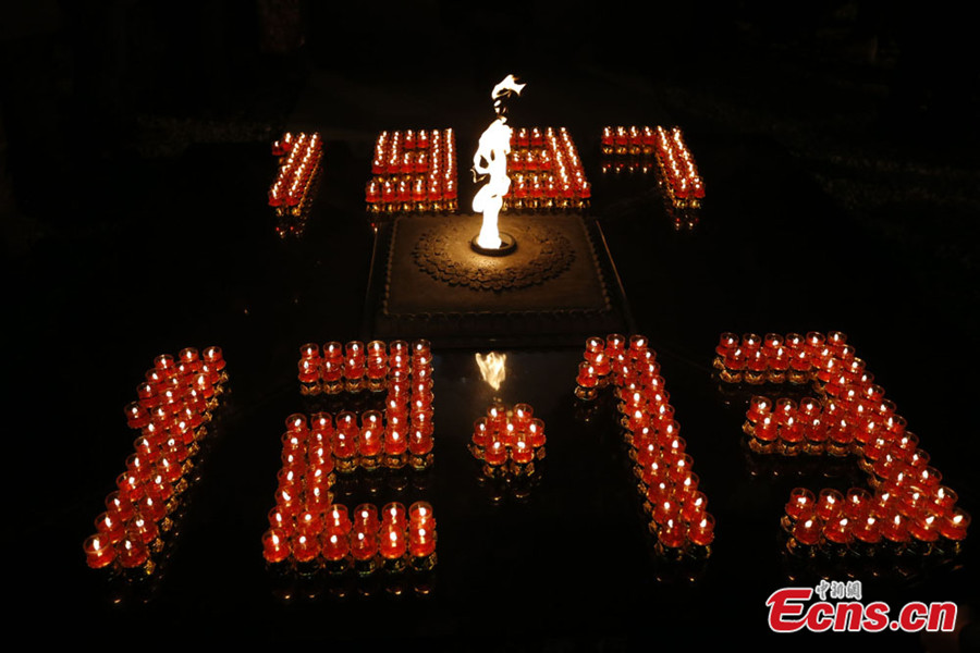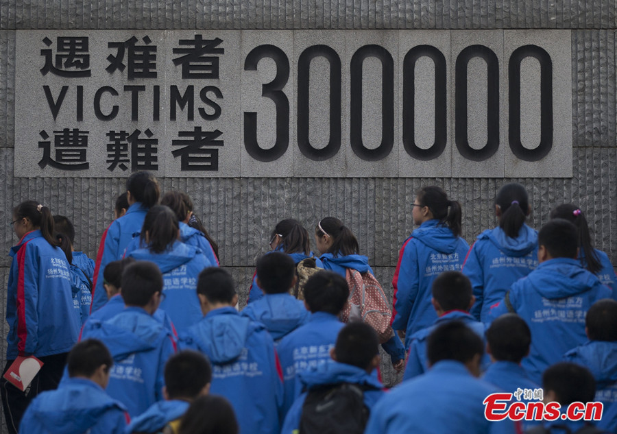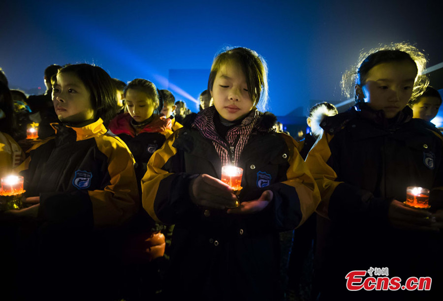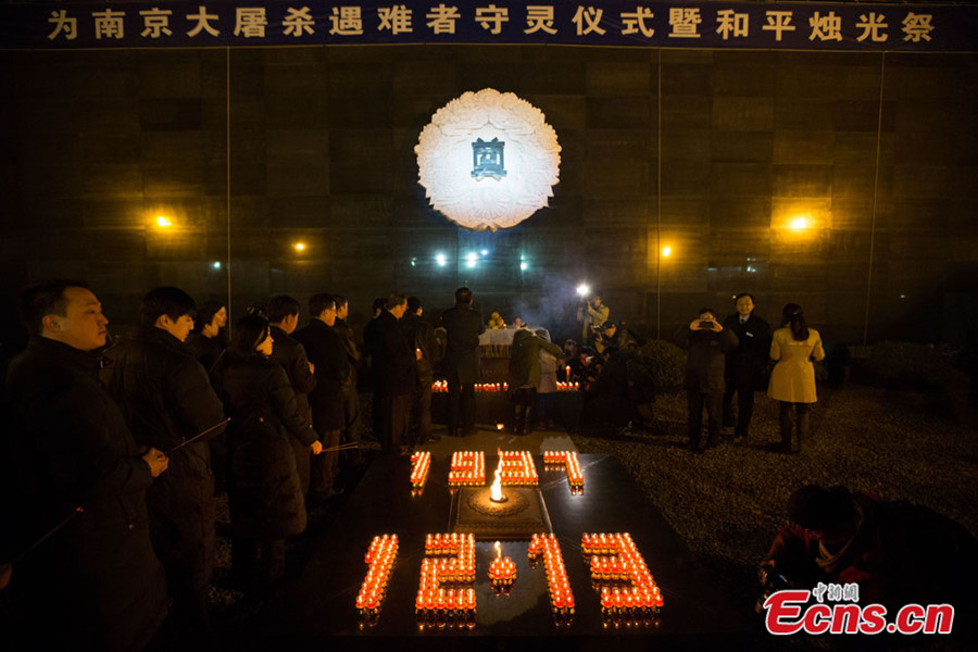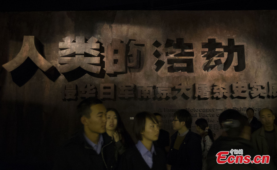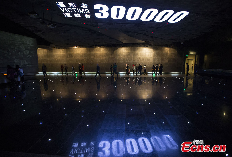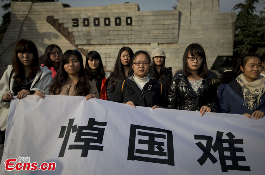People mourn victims at the Memorial Hall of Victims in the Nanjing Massacre by Japanese Invaders, in Nanjing, capital city of east China's Jiangsu province, Dec 12, 2013. Friday marks the 76th anniversary of the Nanjing Massacre that left some 300,000 Chinese dead when the Japanese occupied Nanjing on Dec. 13, 1937 and began a six-week massacre. [Photo/Han Dan]