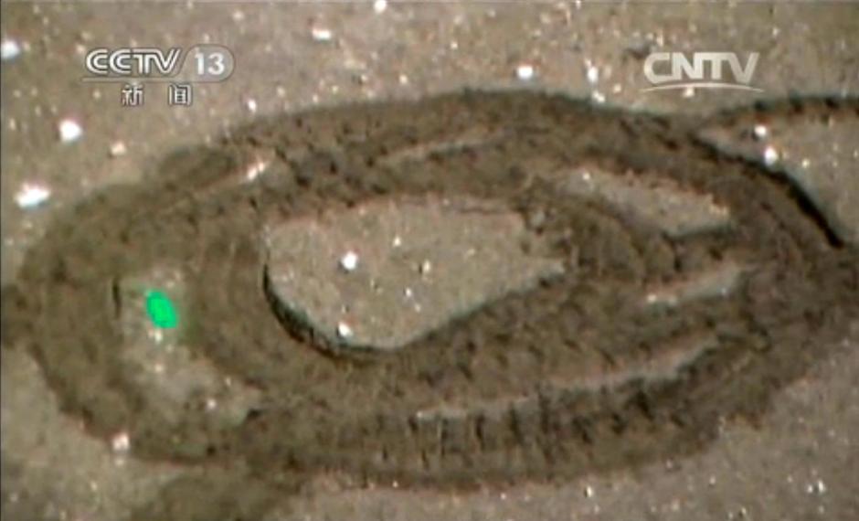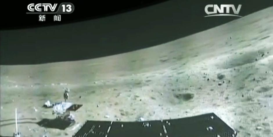 A CCTV screenshot shows the panorama of China's lunar probe Chang'e-3's landing zone. (Source: CNTV)