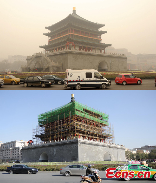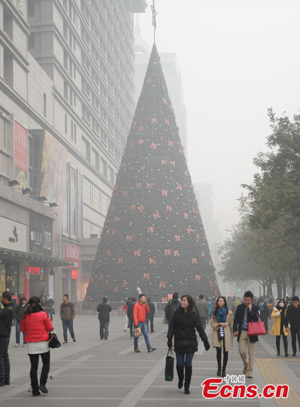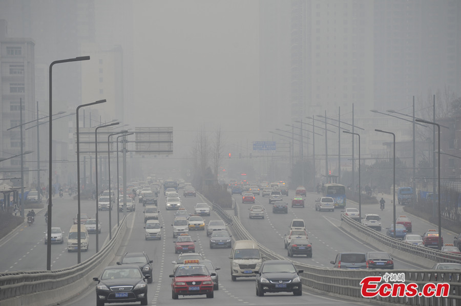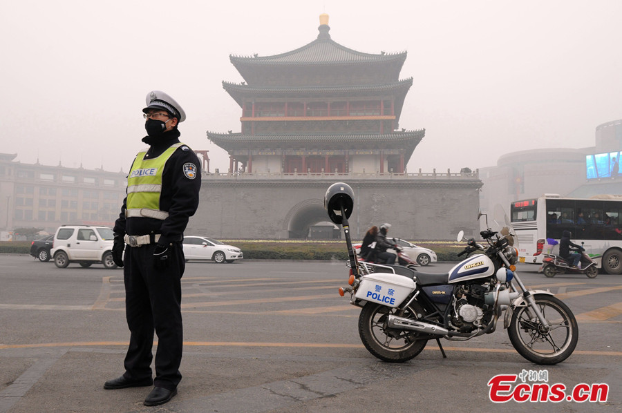 A thick blanket of dark grey air continues to loom over the city of Xi'an as it suffers a seventh straight day of serious smog on Dec 24, 2013. Smog has shrouded many cities from western to eastern China, including Xi'an, capital of Shaanxi Province, where air pollution reached the index limit level. The city government launched an emergency response because of the pollution. [Photo: China News Service / Zhang Yuan]