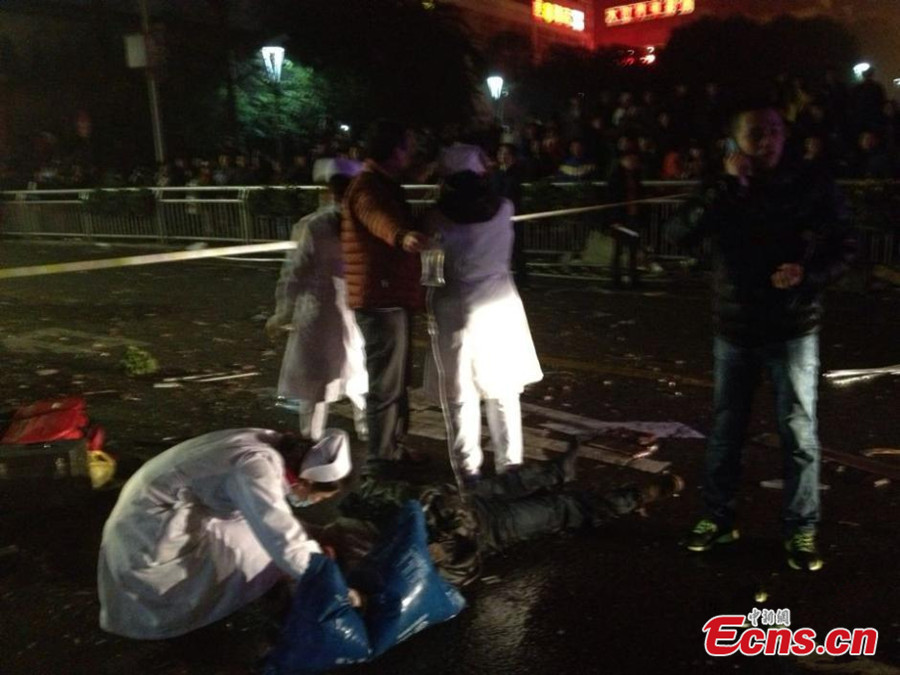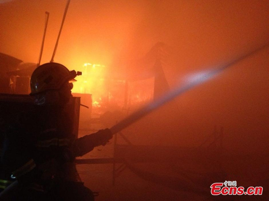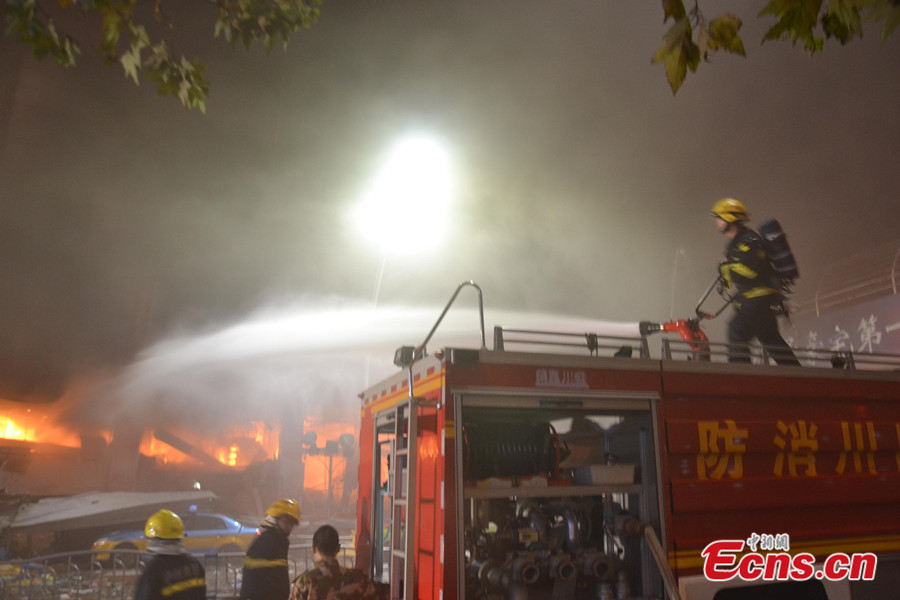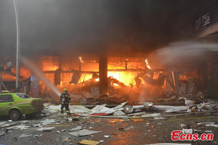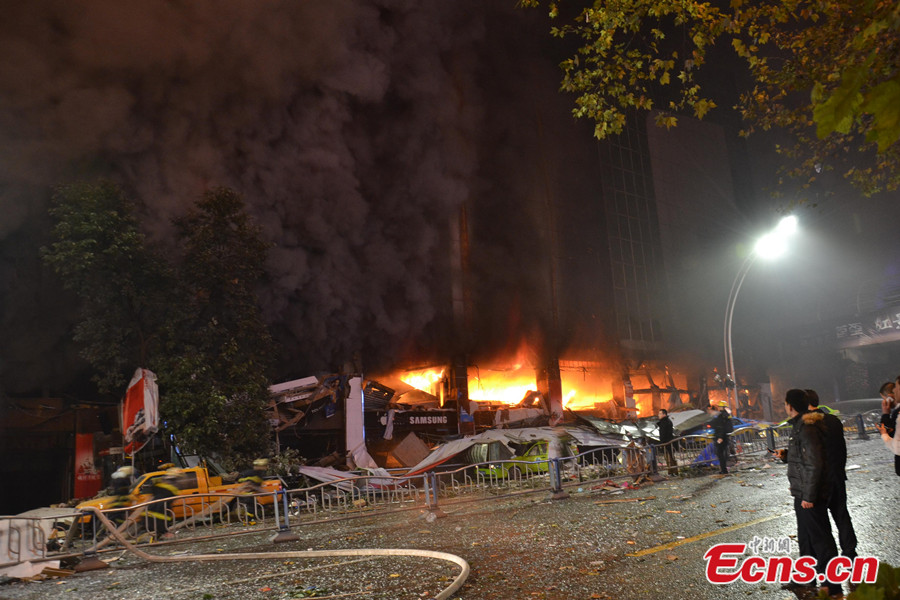 Four people have been confirmed dead and 35 others injured after a fire triggered by a natural gas explosion broke out Thursday evening in a shopping mall in Luzhou City, southwest China's Sichuan Province. [Photo/China News Service]