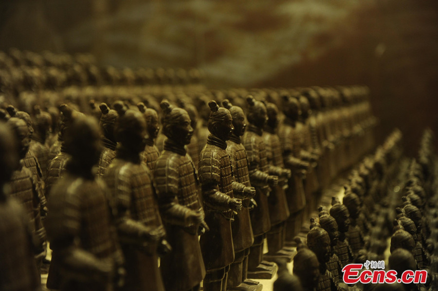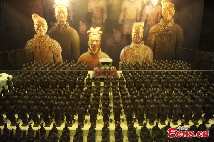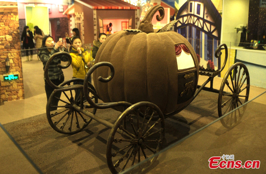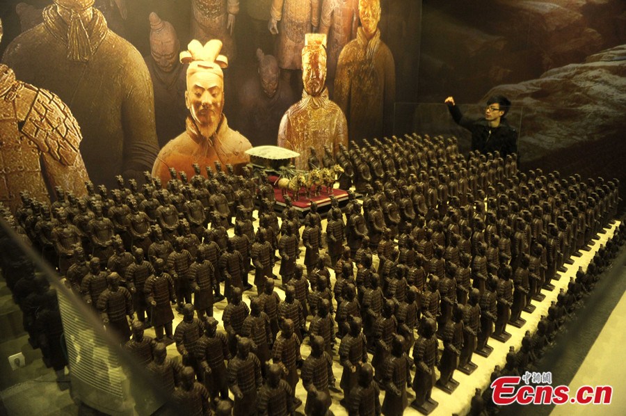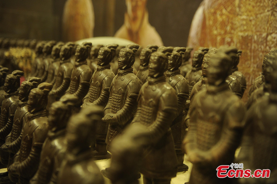 Terracotta warriors, made of chocolate, are exhibited at the World Chocolate Wonderland in Chongqing municipality on Dec 30, 2013. The chocolate-themed activity has visited Beijing, Shanghai, Taipei, Taichung and Kaohsiung since its start in 2010. This year's activity will run till March 31, 2014. [Photo: China News Service / Chen Chao]