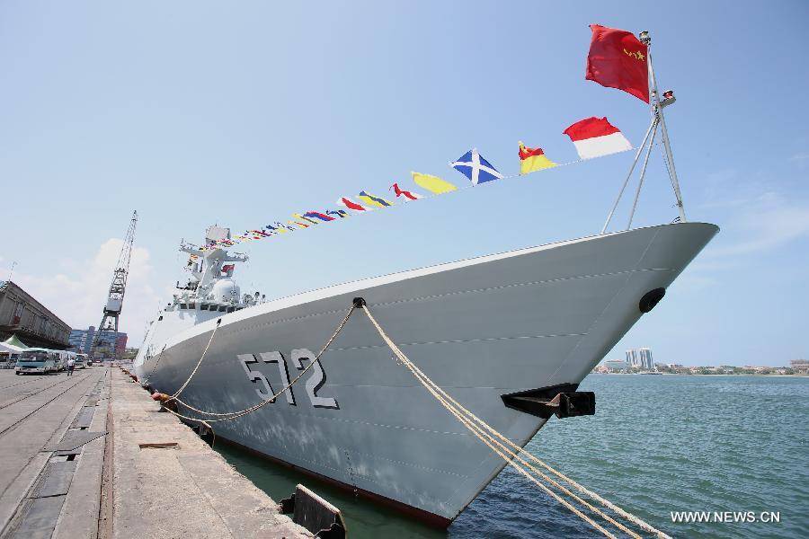 The missile frigate Hengshui of the 15th Chinese naval escort fleet docks at the port of Dar es Salaam, Tanzania, Dec. 29, 2013. After completing its escort mission, the 15th Chinese naval escort fleet paid a four-day visit from Sunday to Tanzania on its way back to China. (Xinhua/Zhang Ping)