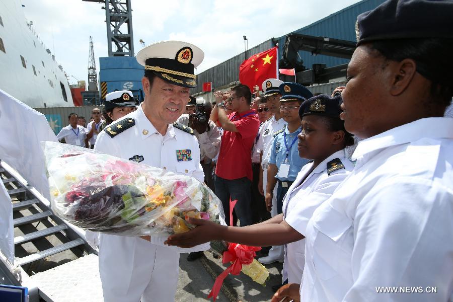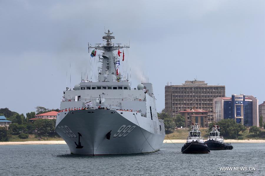 The missile frigate Hengshui of the 15th Chinese naval escort fleet docks at the port of Dar es Salaam, Tanzania, Dec 29, 2013. After completing its escort mission, the 15th Chinese naval escort fleet paid a four-day visit from Sunday to Tanzania on its way back to China. (Xinhua/Zhang Ping)