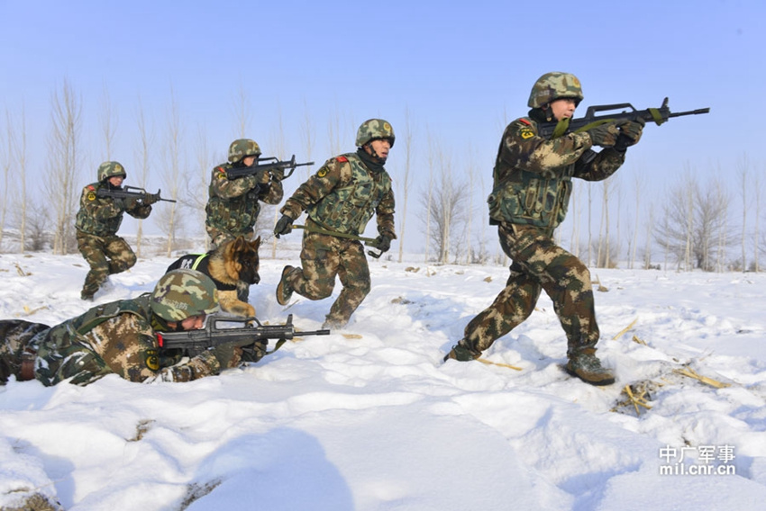 The photo shows that members of border security force are in field training in groups. (Source: mil.cnr)