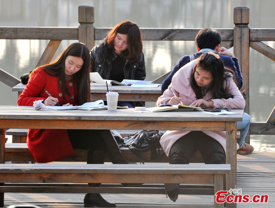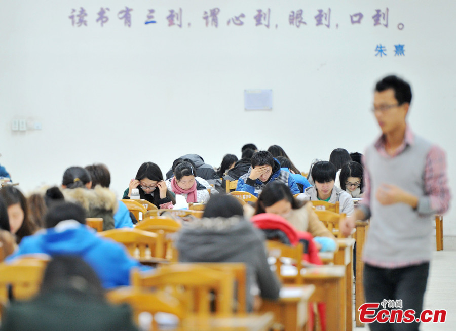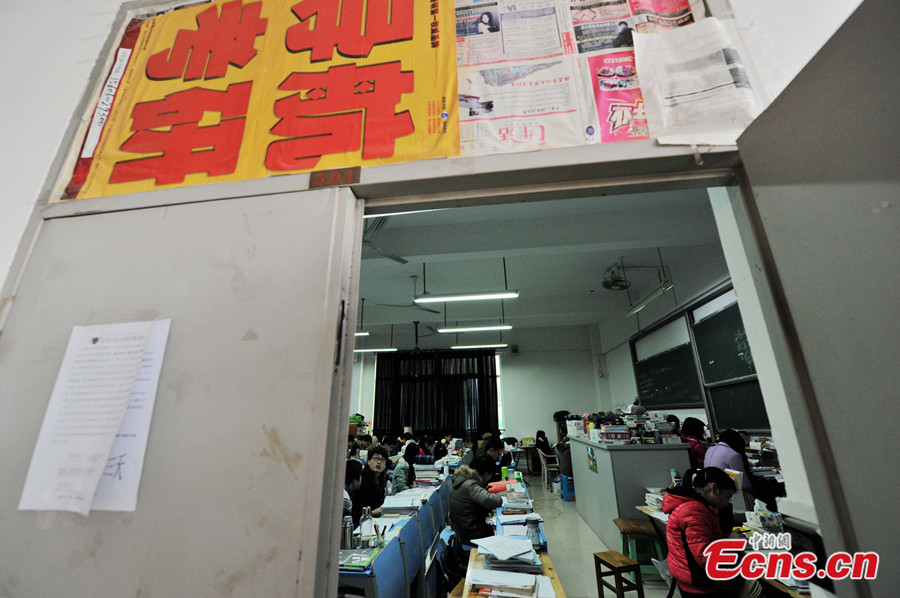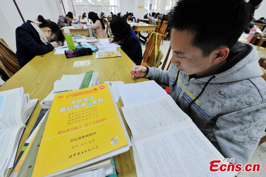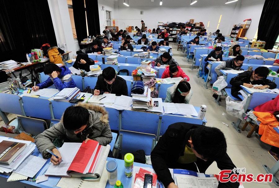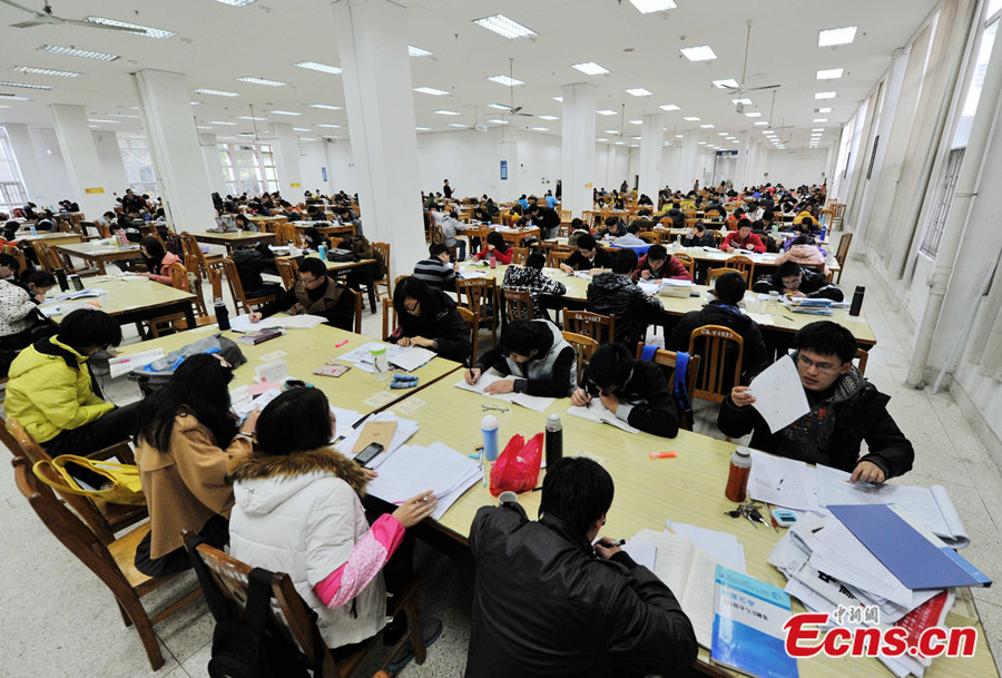 Students study at Fujian Agriculture and Forestry University in Fuzhou of Fujian province on Jan. 2, 2014 in preparation for the postgraduate exam, which will take place from Jan. 4 to 6. [Photo: China News Service / Zhang Bin]