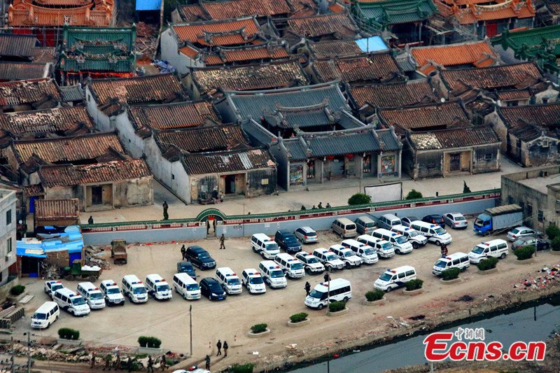 A massive drugs operation ends in the seizure of three tonnes of crystal meth, or "ice," and 182 arrests, in Boshe Village in the city of Lufeng, south China's Guangdong province, local police announced on Thursday. It involved more than 3,000 personnel in 109 separate raids with the help of helicopters and border speedboats. [Photo/Rong Chuwen]
