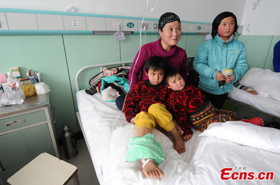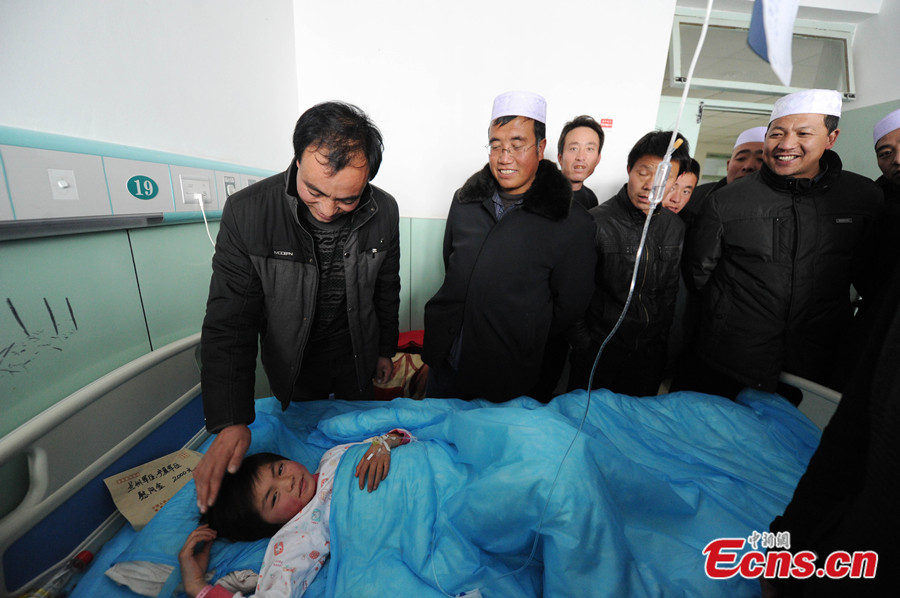 An injured girl receives treatment at a hospital in Xiji county of Guyuan city, northwest China's Ningxia Hui autonomous region on Jan 6, 2013. Fourteen people died and ten others were injured in a stampede during a religious event in Xiji on Sunday afternoon. [Photo: China News Service / Yang Yanmin]