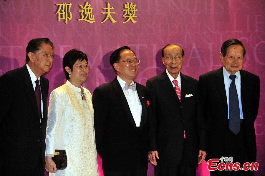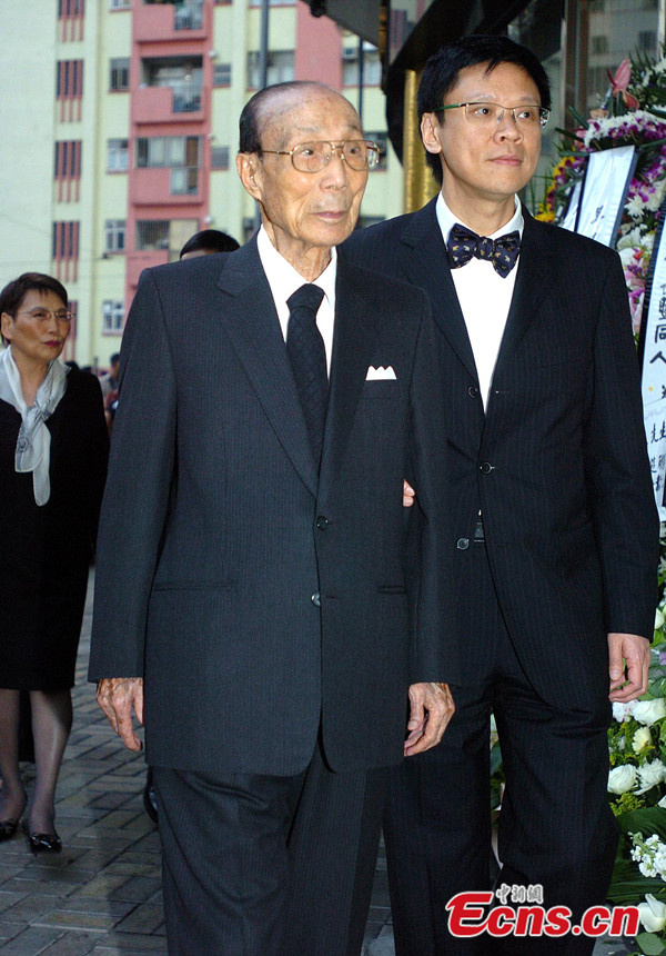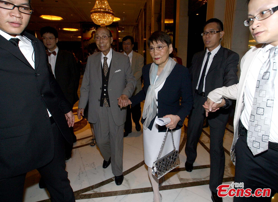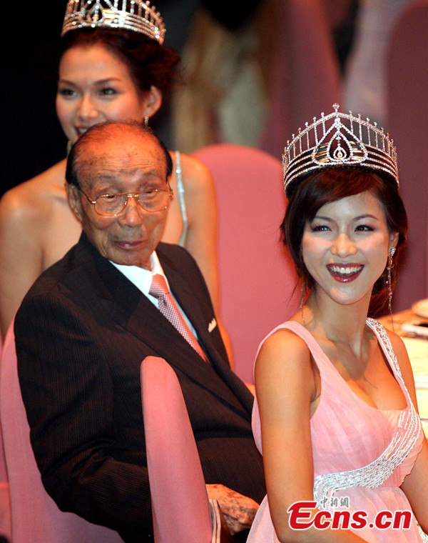 The founder and chairman of Shaw Brothers and the chairman of TVB Run Run Shaw died at the age of 107 at home in Hong Kong on Jan 7, 2014. File photo shows Run Run Shaw (C) attends a TVB ceremony on Oct 4, 2007. [File photo/China News Service]