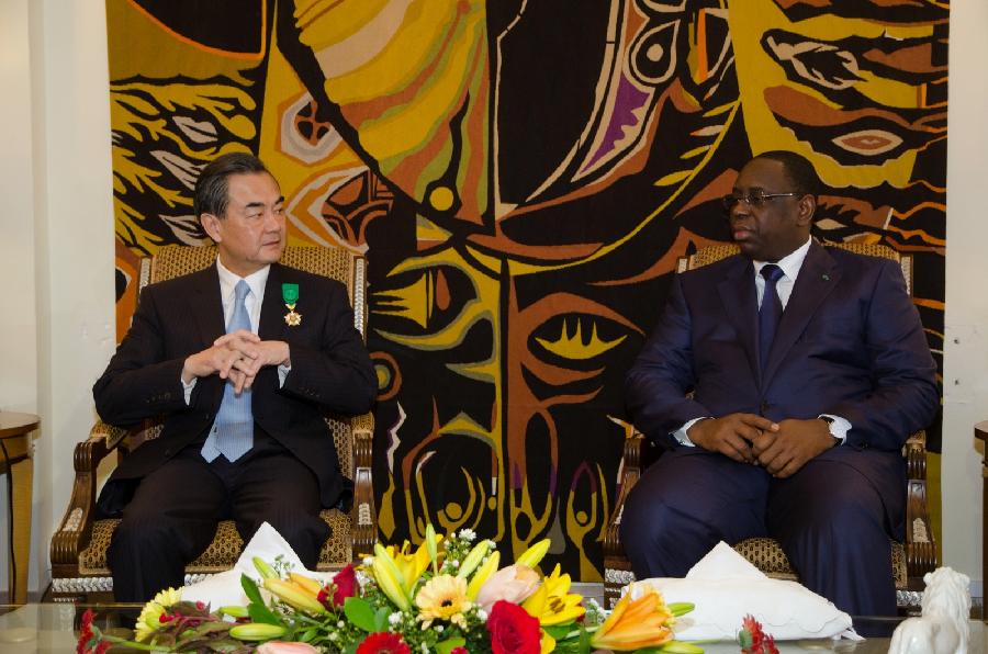 Senegal's President Macky Sall (R) meets with China's Foreign Minister Wang Yi in Dakar, Senegal, Jan. 10, 2014. (Xinhua/Tai Jianqiu)