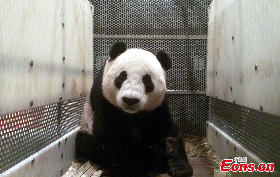 Yun Zi, a giant panda that had been on loan to the San Diego Zoo in the US since 2009, arrives in Shanghai early Saturday, January 11, 2014. The lovable panda was born at the zoo to mother Bai Yun and father Gao Gao, and has amassed a massive number of fans. (Photo: China News Service / Zhang Hengwei)