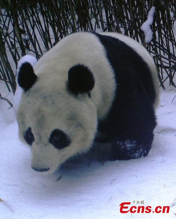 Photos of a wild giant panda are taken at a natural reserve for giant pandas, in Yuexi county of southwest China's Sichuan province recently. [Photo/Zhong Xin]